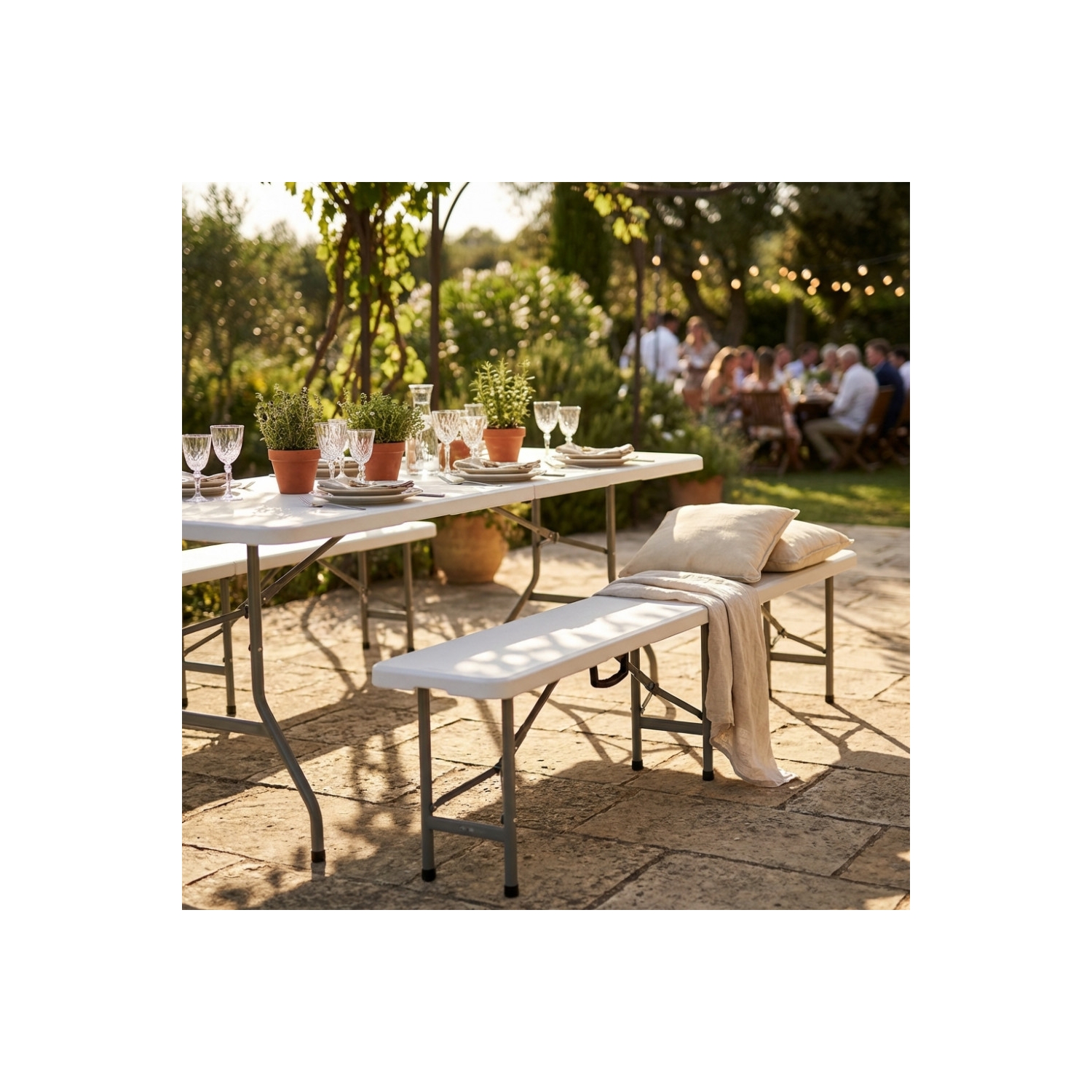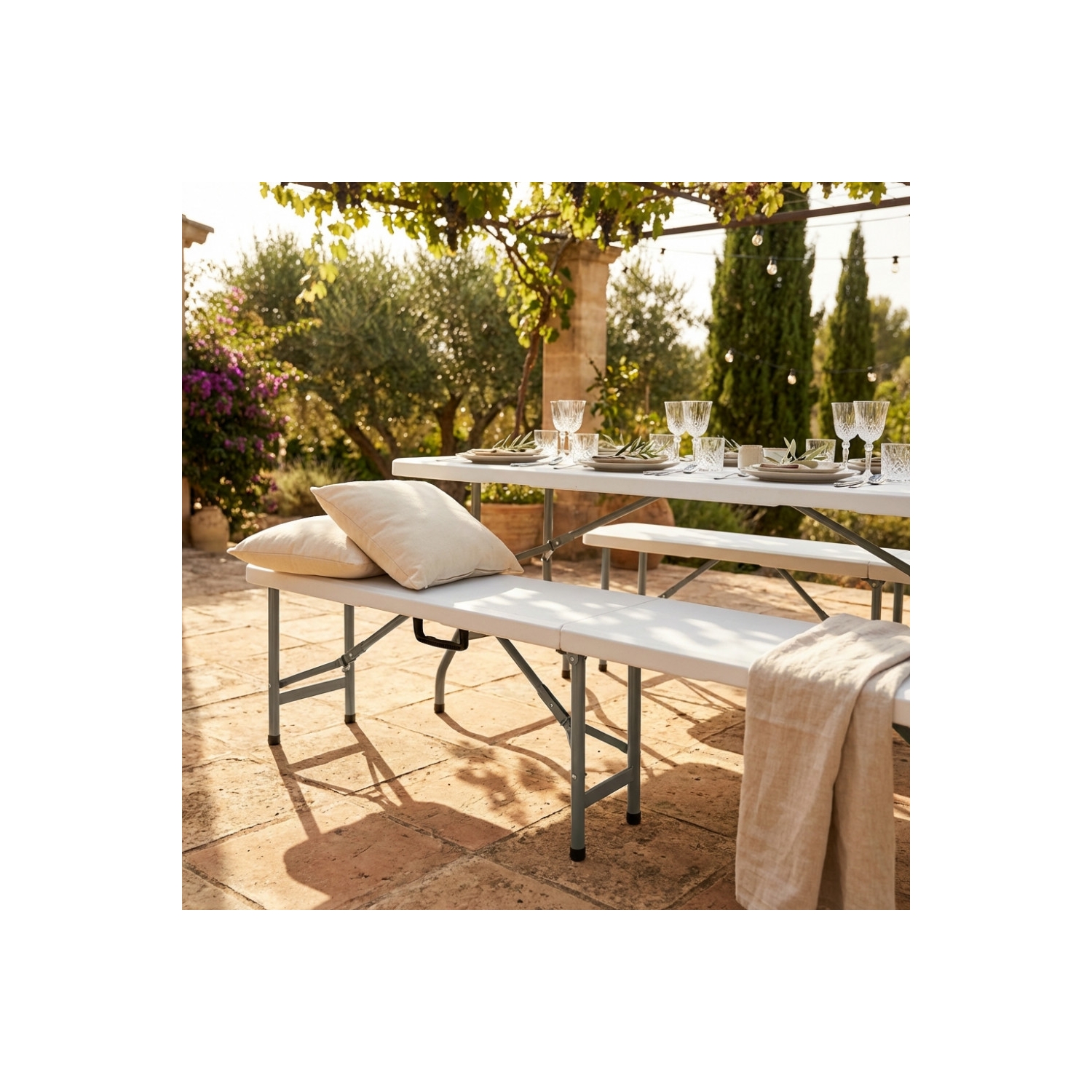 Panca pieghevole tavolo campeggio e catering bianca 180x30x43cm
