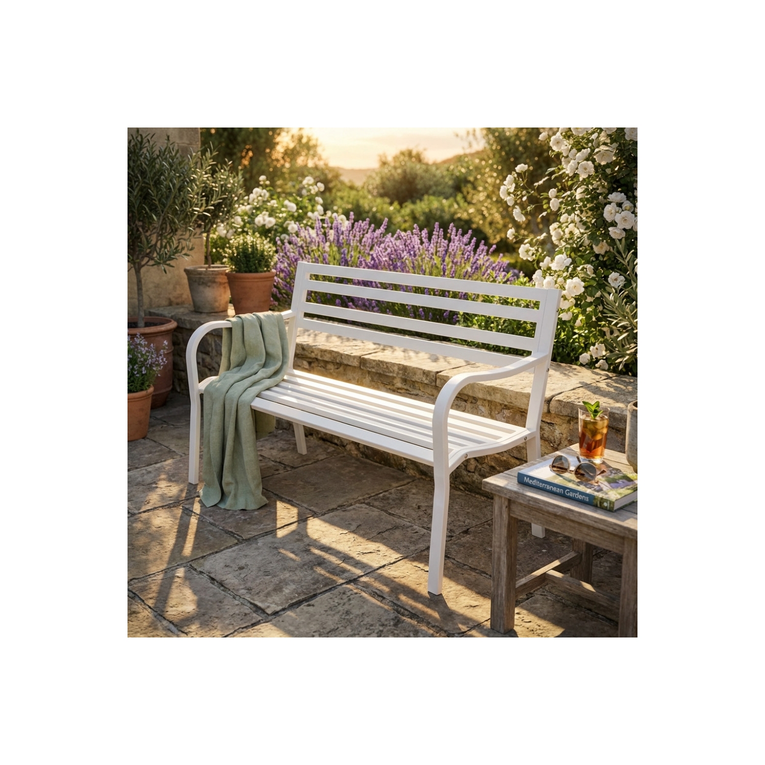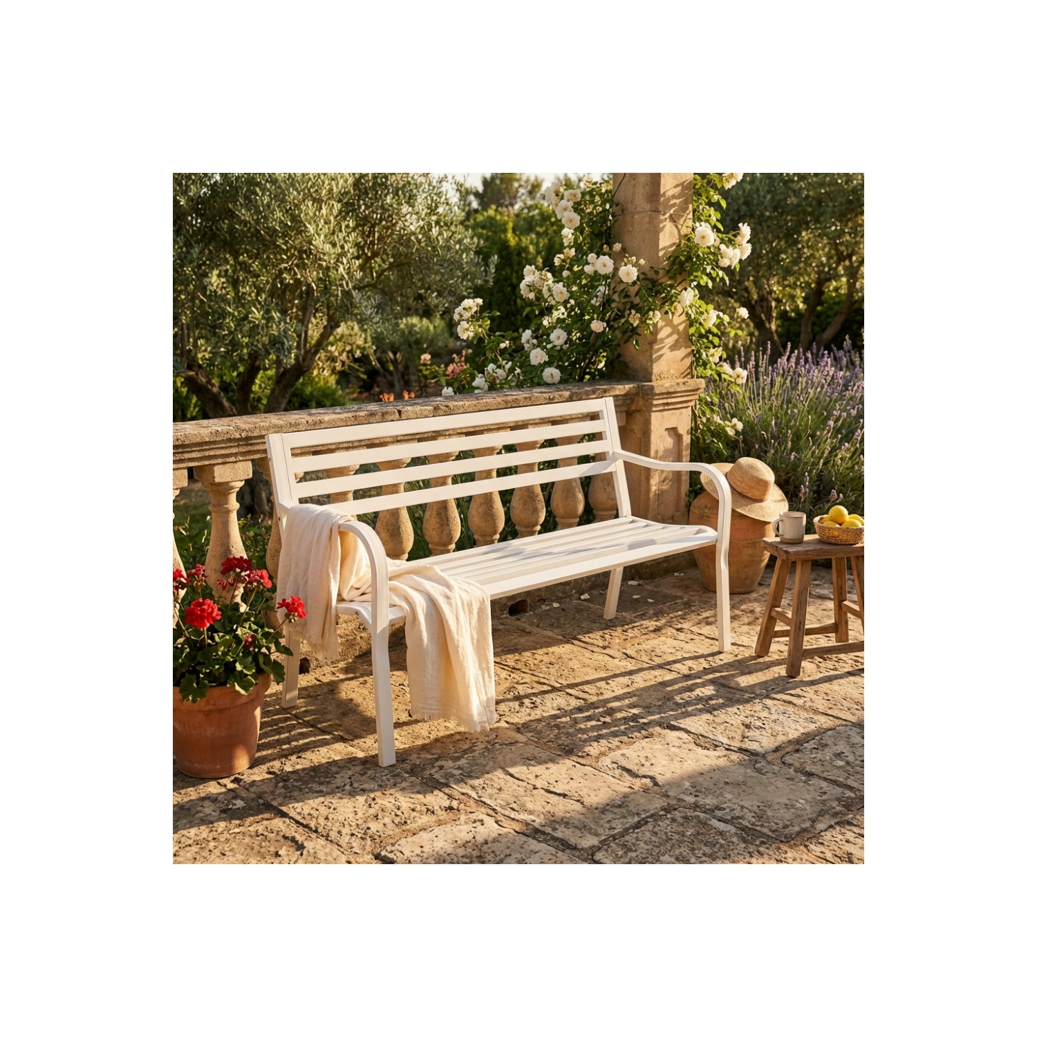 Panchina da giardino bianca in metallo 128x56x80h per 2 persone - CHLOE