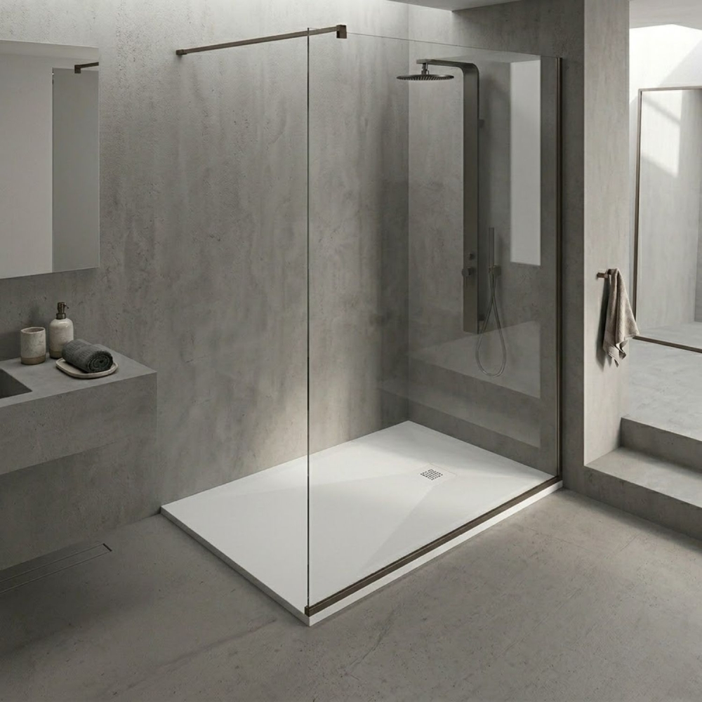 Il piatto doccia Stone Plus di Duplach è la scelta ideale per chi desidera un design pulito e contemporaneo, abbinato a prestazioni tecniche elevate. La sua superficie effetto pietra con texture ardesia e la griglia di scarico elegante creano un’estetica minimal ma decisa, perfetta per bagni moderni e funzionali.