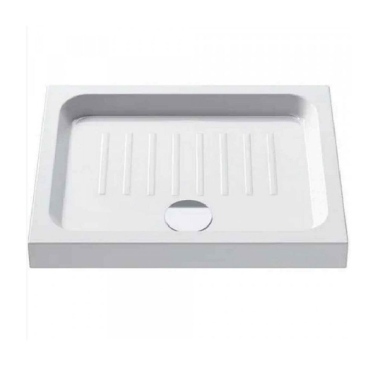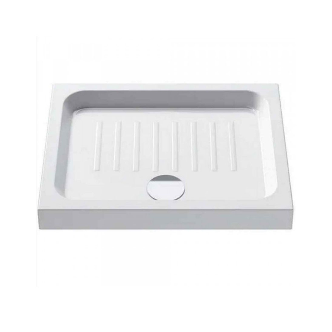 Piatto doccia rettangolare da 90x72 cm, ad appoggio, smaltato su tre lati e con speciale decoro antiscivolo a rilievo.