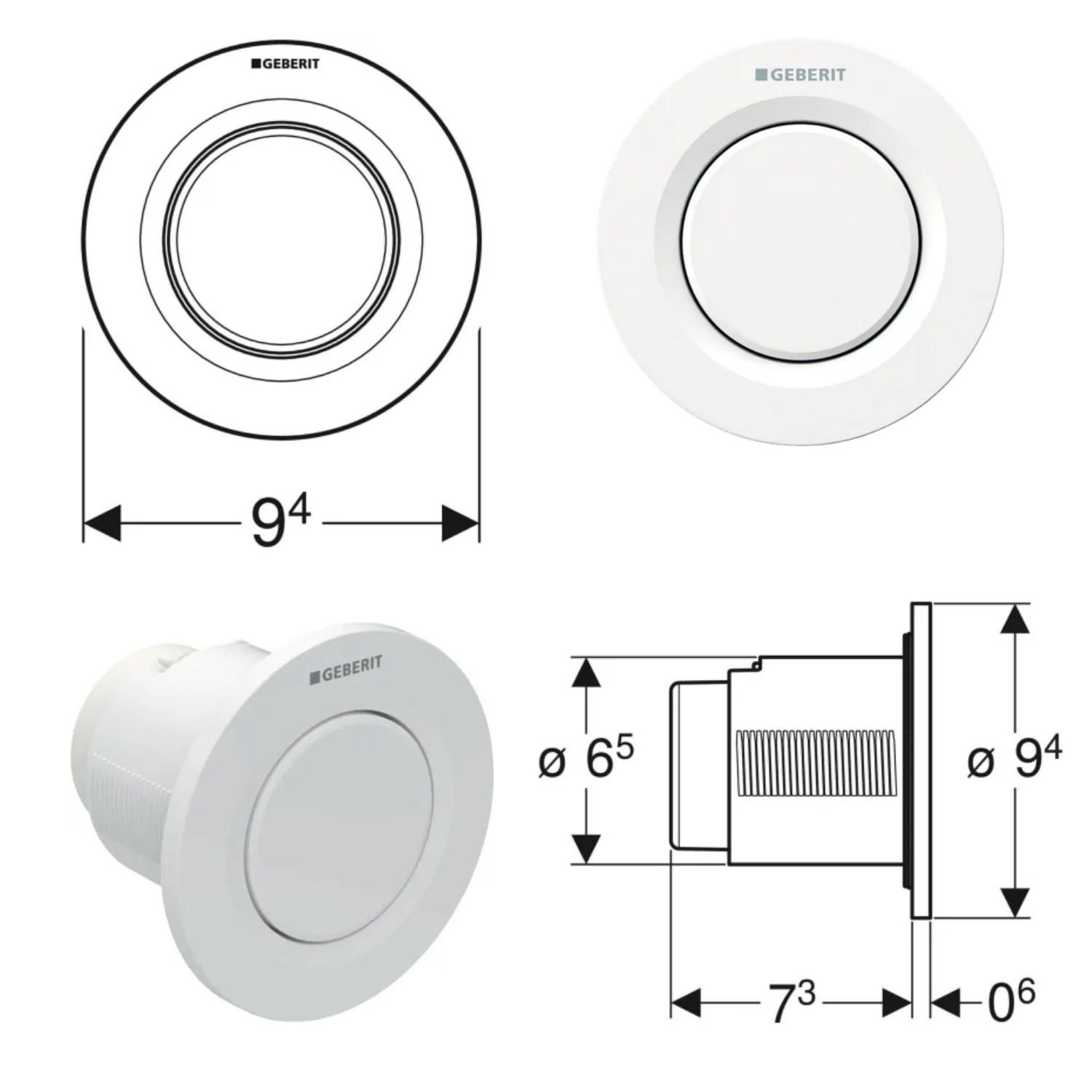 Comando a distanza Geberit tipo 01, rotondo, pneumatico, risciacquo ad una quantità, per cassetta di risciacquo da incasso Sigma 8 cm, pulsante da incasso