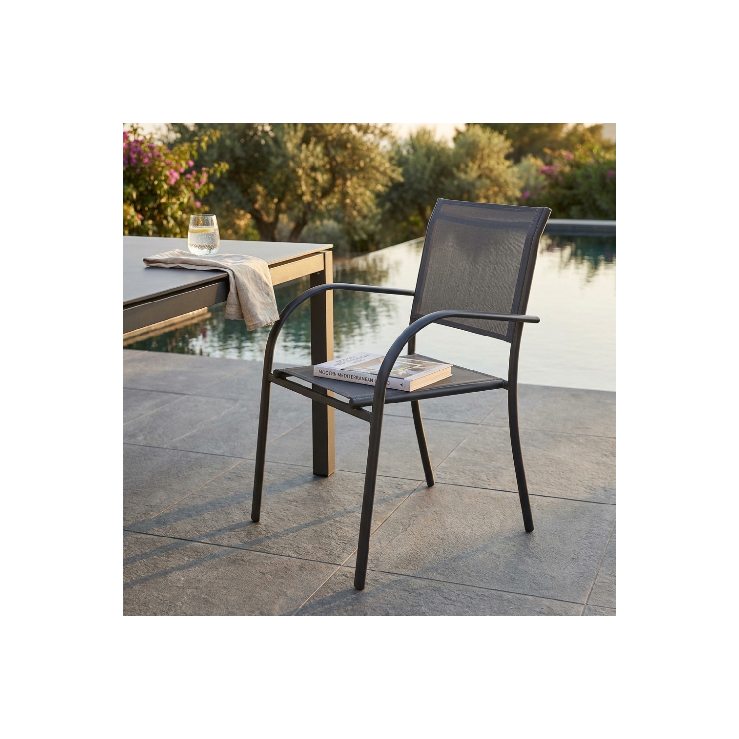 Poltrona da giardino in allumino antracite e tessuto con braccioli - STAMFORD