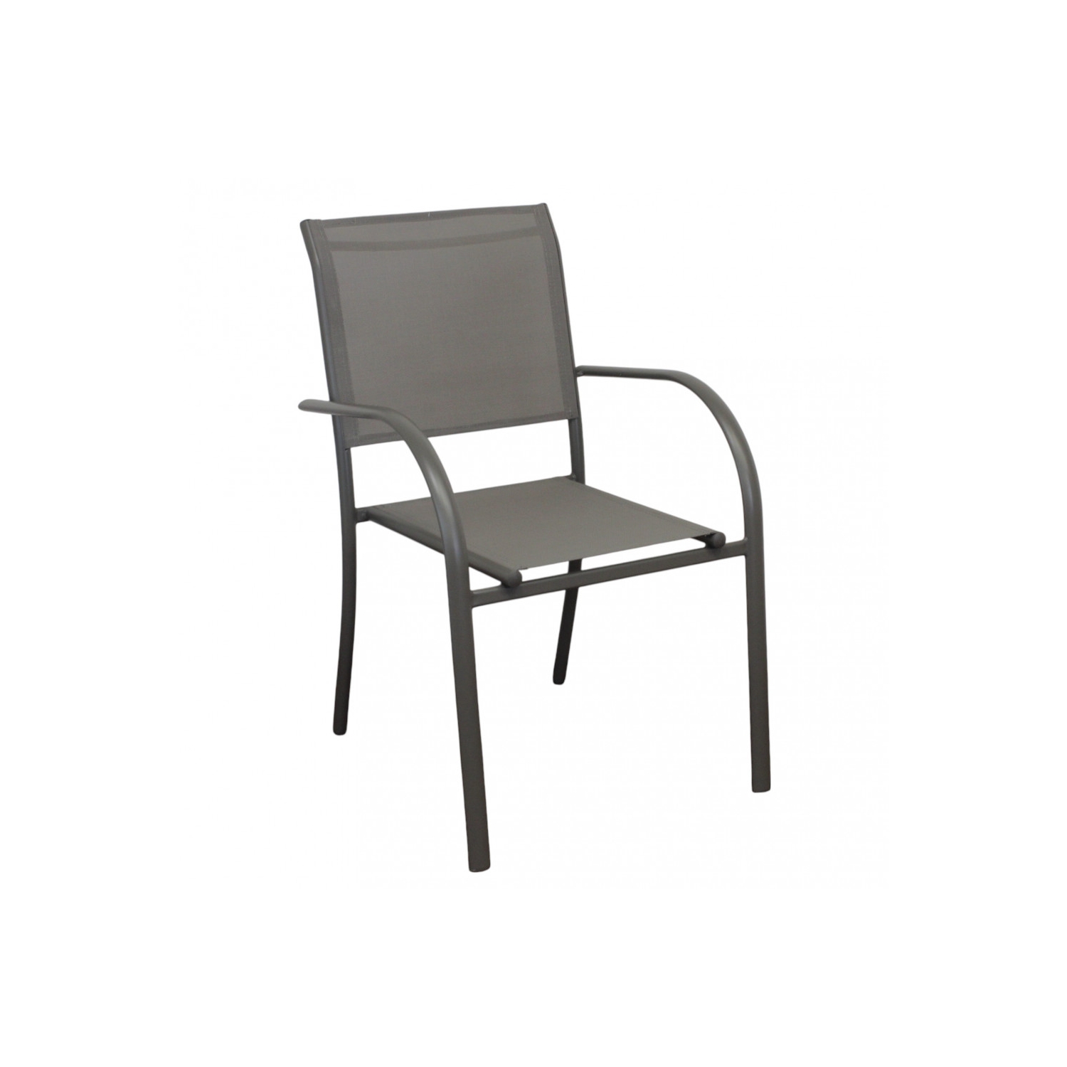 Poltrona da giardino in allumino taupe e tessuto con braccioli - STAMFORD. Impilabile: SI. Dimensioni: 56x63x86cm