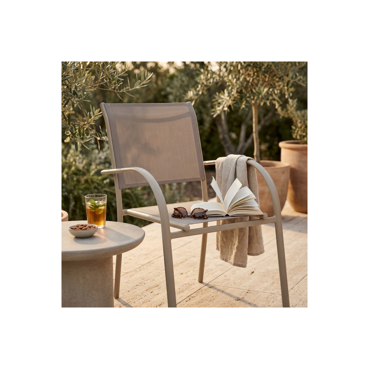 Poltrona da giardino in allumino tortora e tessuto con braccioli - STAMFORD
