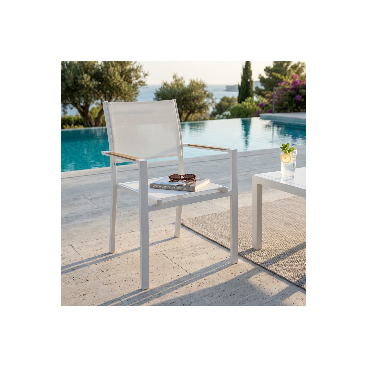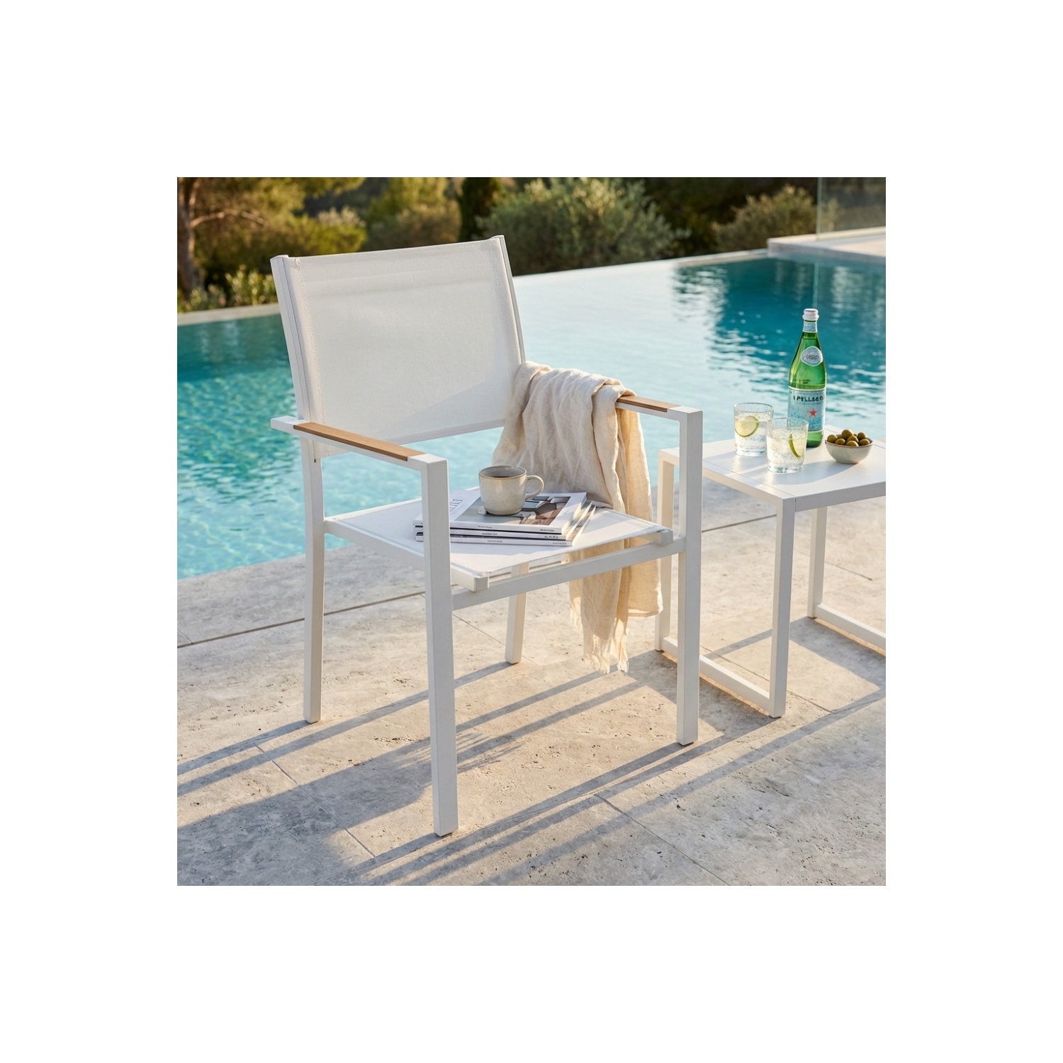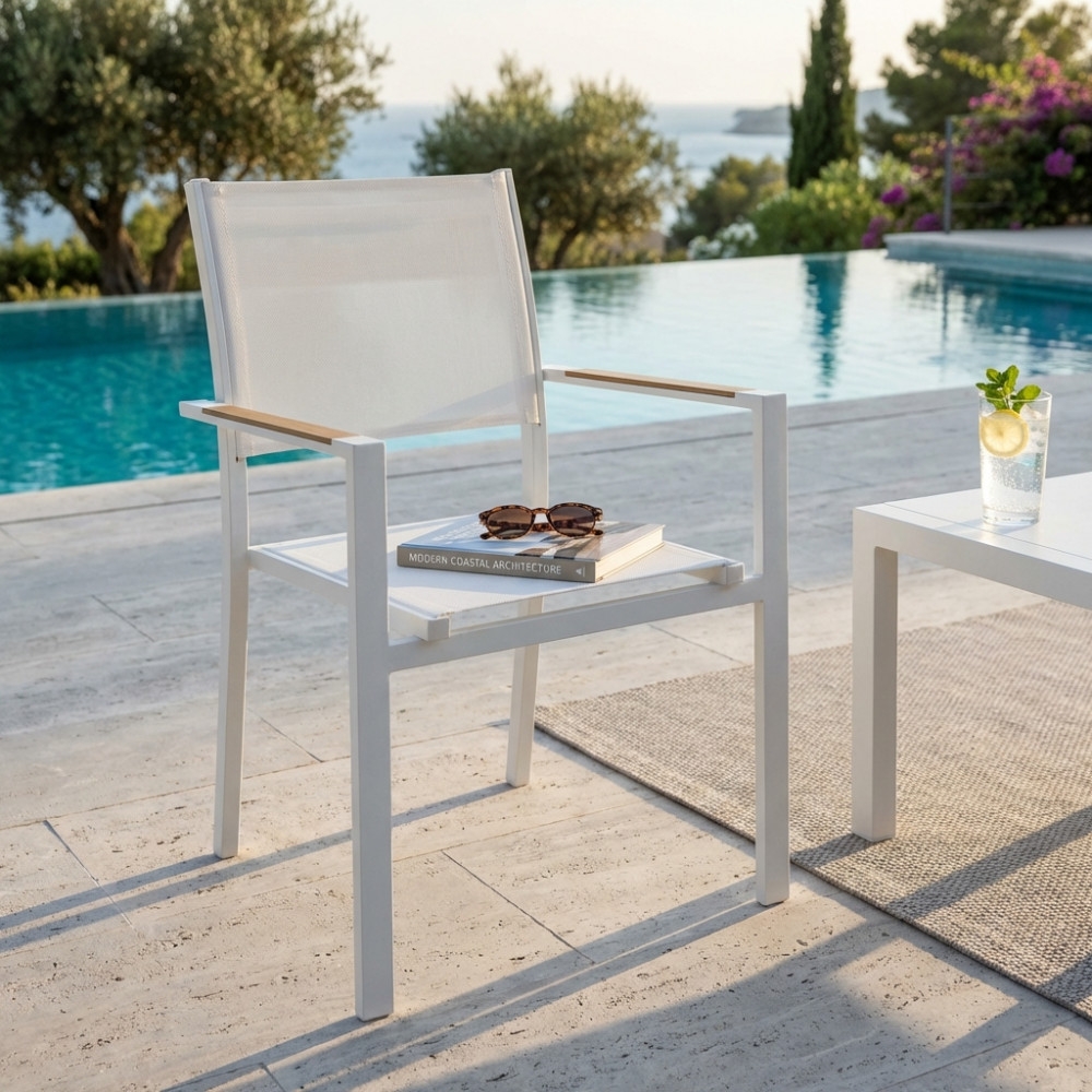 Poltrona per esterno con braccioli in alluminio bianco impilabile - BROOKLYN