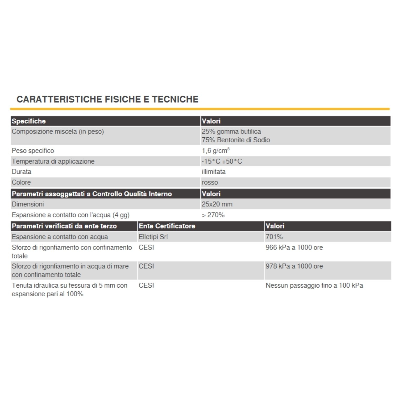 - Composizione: 75% bentonite di sodio, 25% gomma butilica