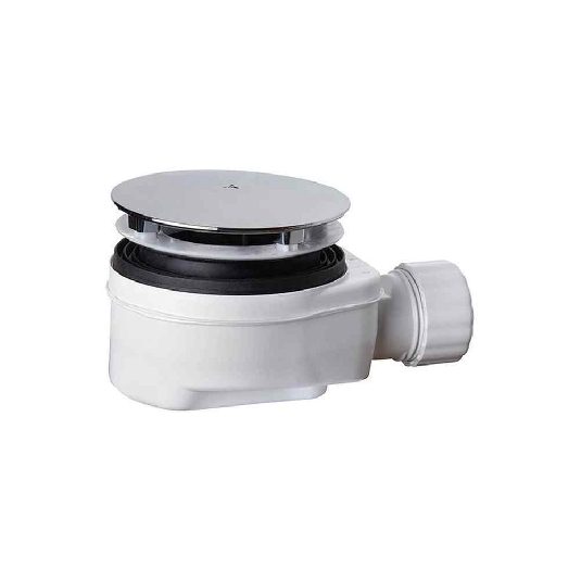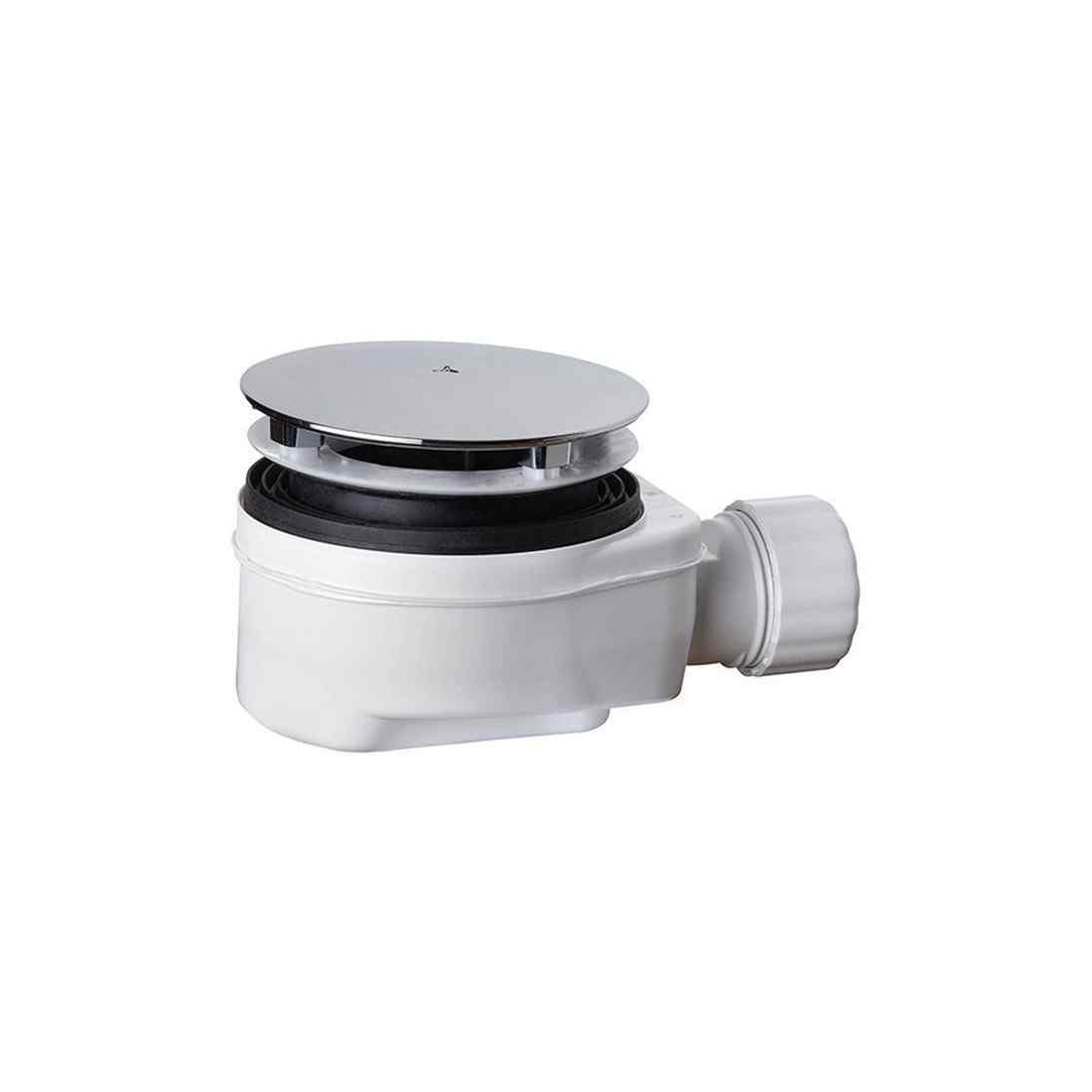 Piletta sigonata in PP per piatto doccia con foro ø90 dal minimo ingombro (60 mm). Griglia amovibile in ABS cromato, sifone e cestello ferma capelli amovibili per pulizia periodica. Massima ispezionabilità con accesso al tubo di scarico. Fissaggio con viti per un migliore adattamento.