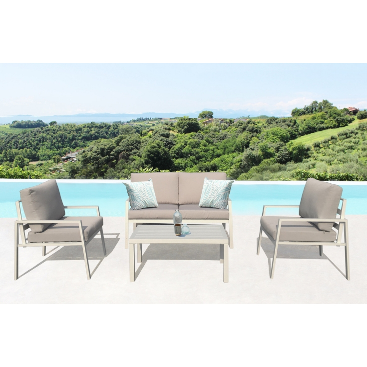 Salotto esterno con divanetto, poltroncine e tavolino Helsinki - Tortora