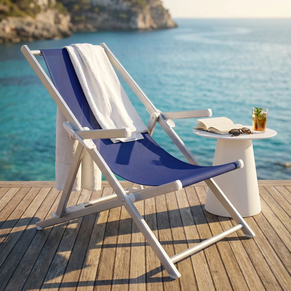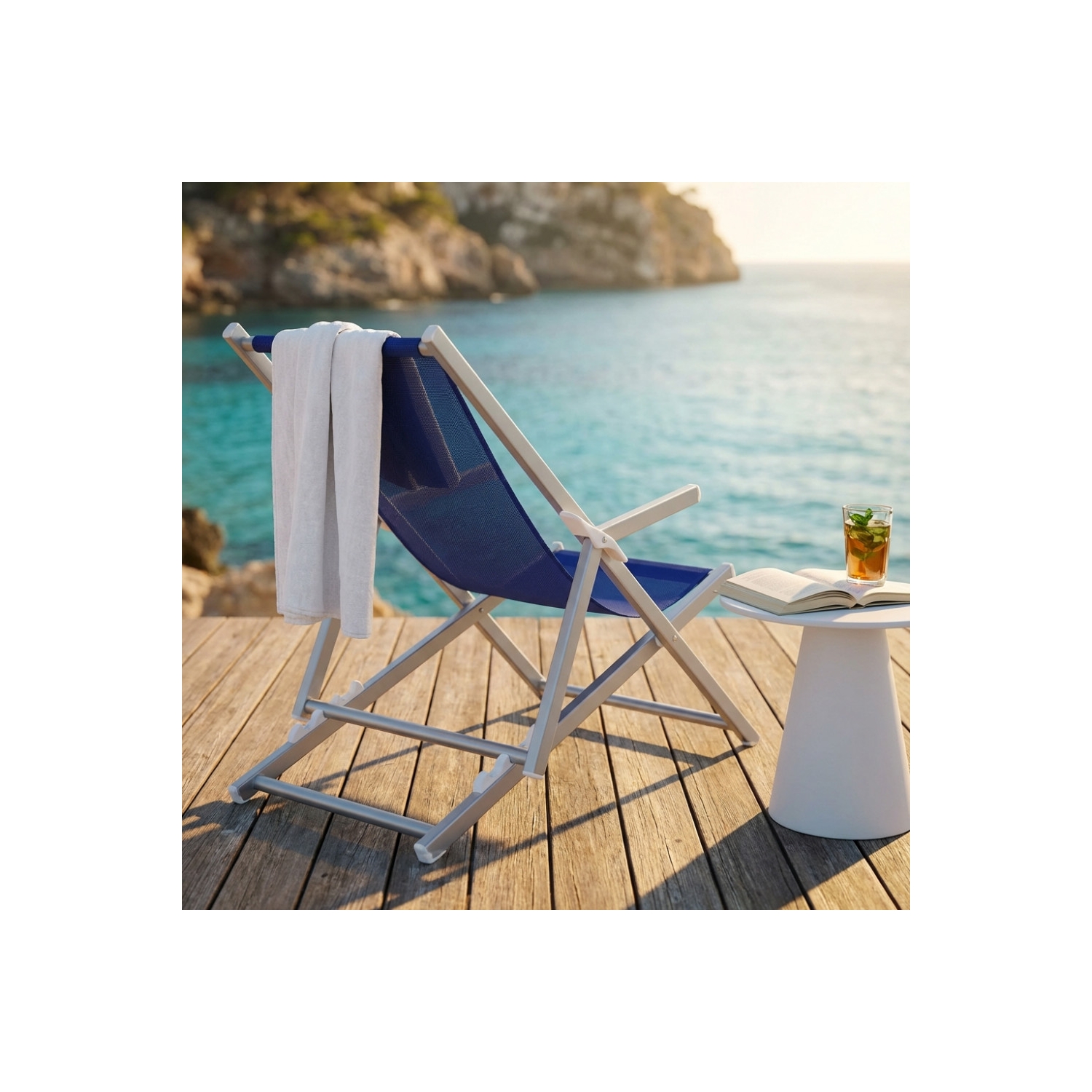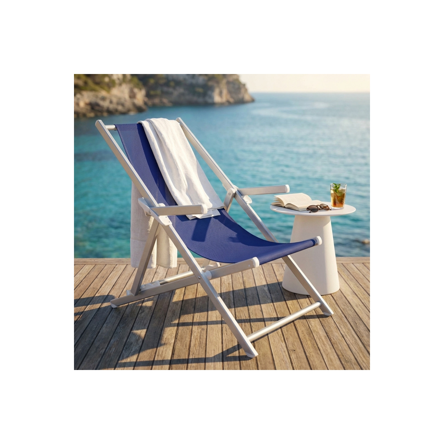 Sdraio Mare Textilene C/Braccioli Pieghevole Blu 98x67.5x106cm
