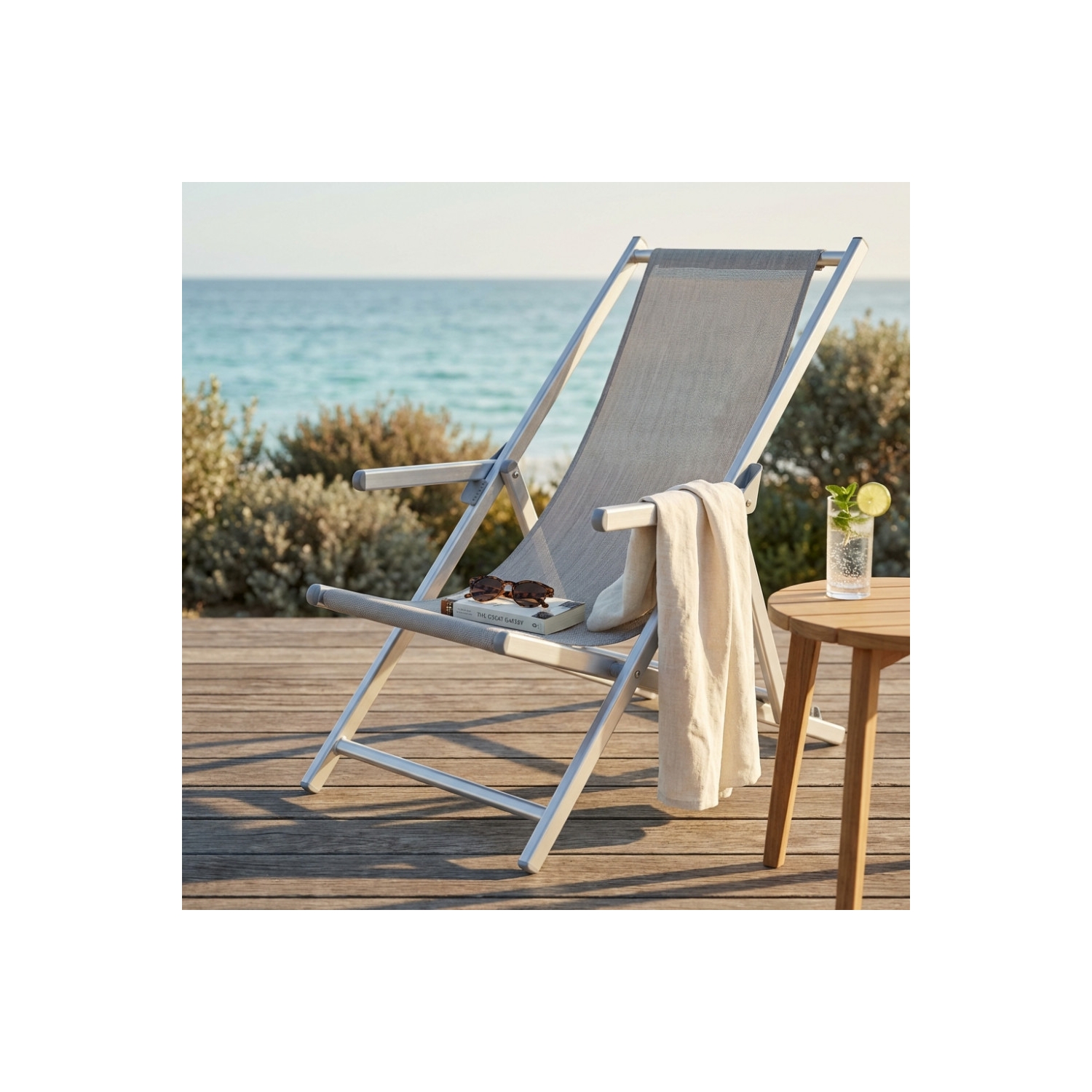 Sdraio Mare Textilene C/Braccioli Pieghevole Grigio 98x67.5x106cm