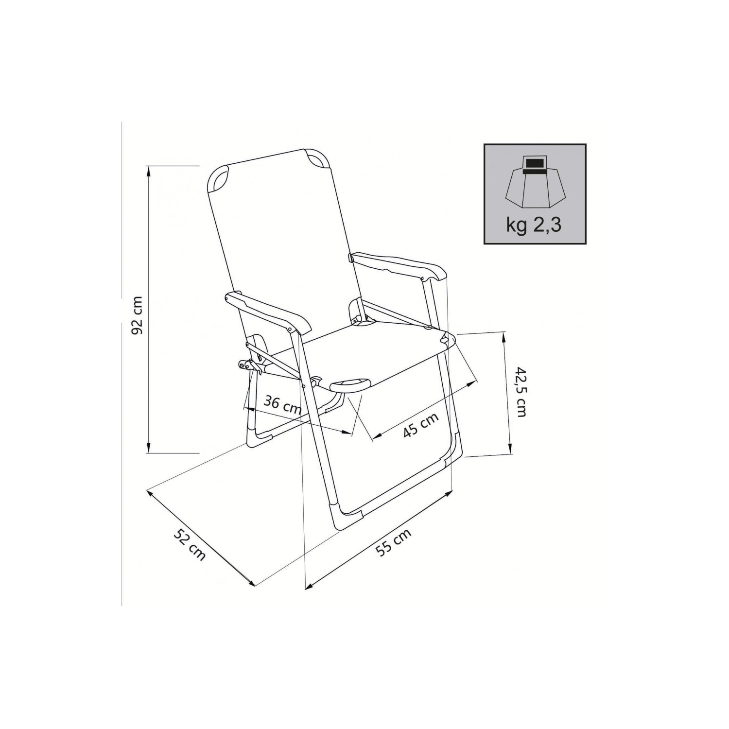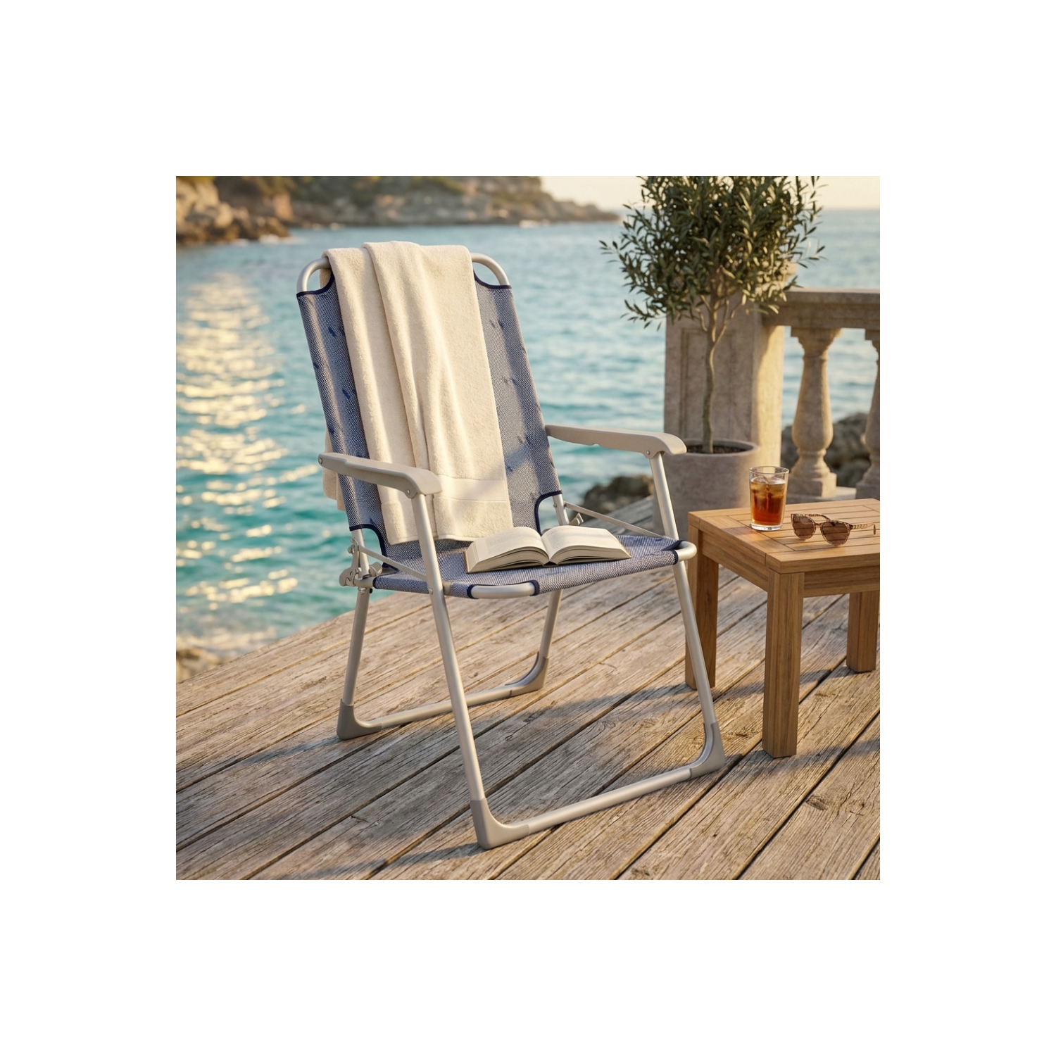 Sedia sdraio pieghevole azzurra 52x55x89cm in metallo