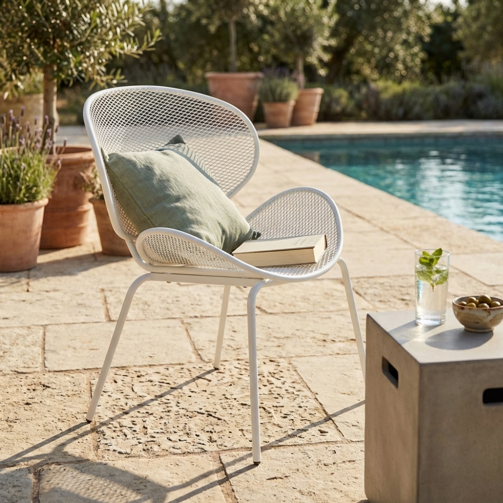 Poltrona da giardino impilabile antiruggine bianca Midway