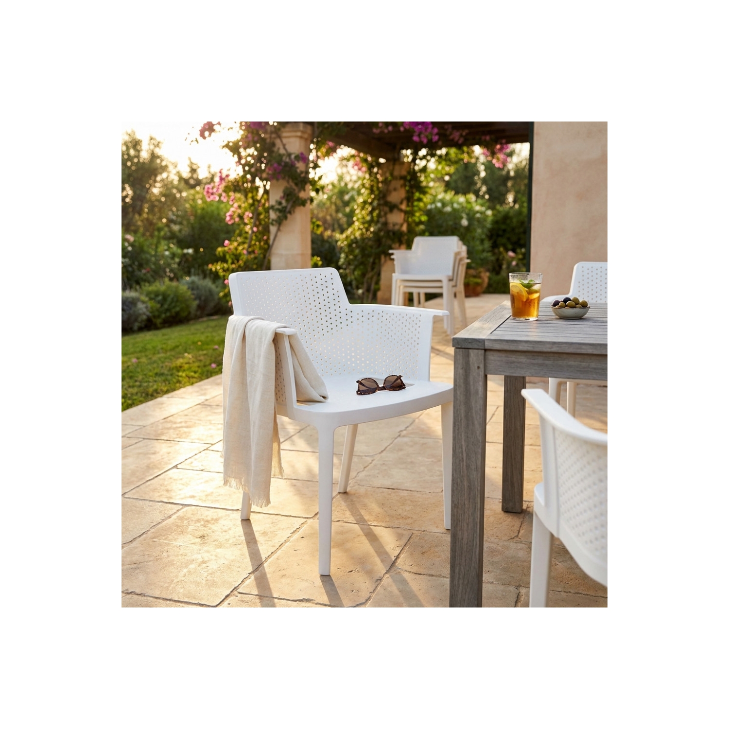 Poltrona da giardino impilabile in polipropilene bianca Cathy