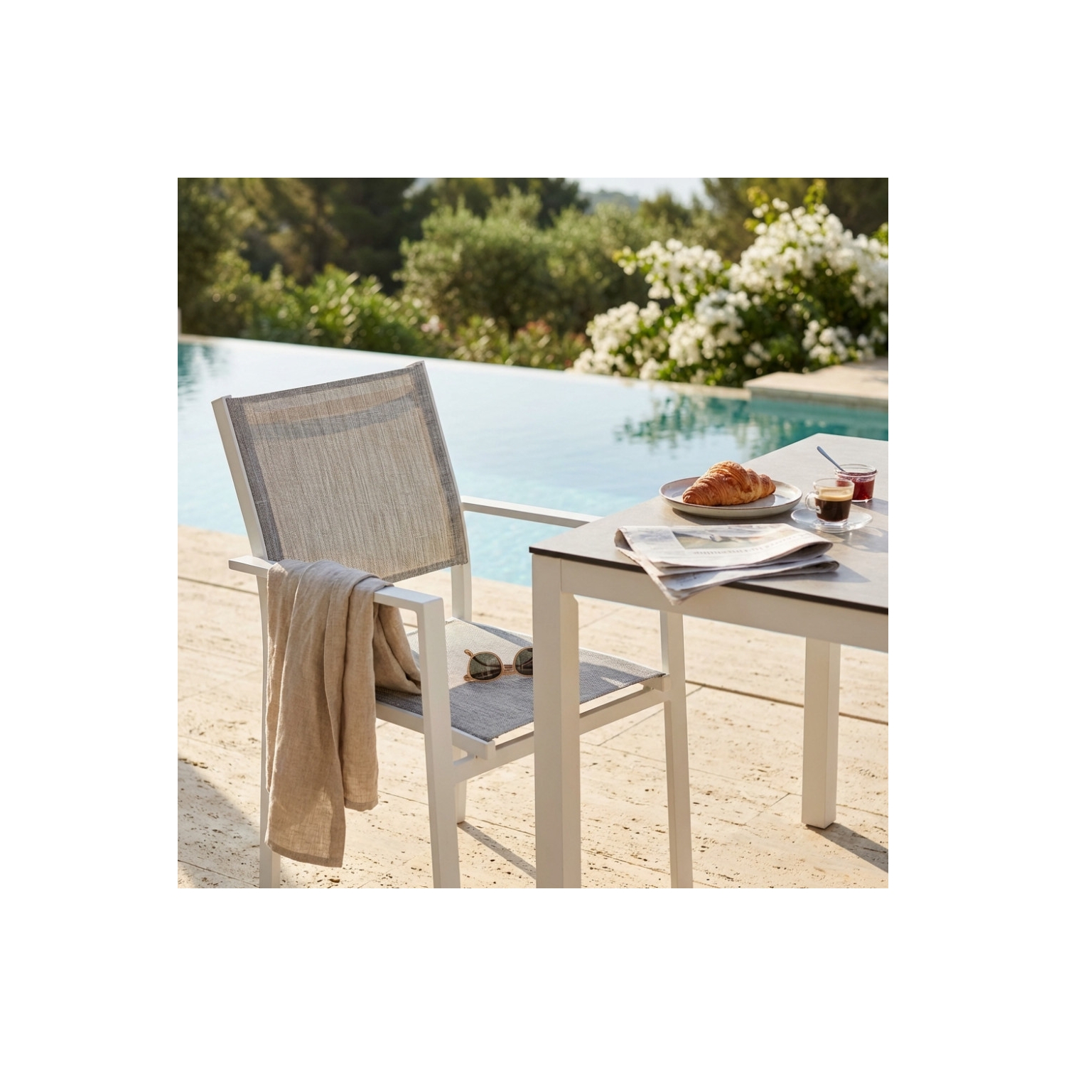 Poltrona con braccioli impilabile da giardino Jamaica - Bianca