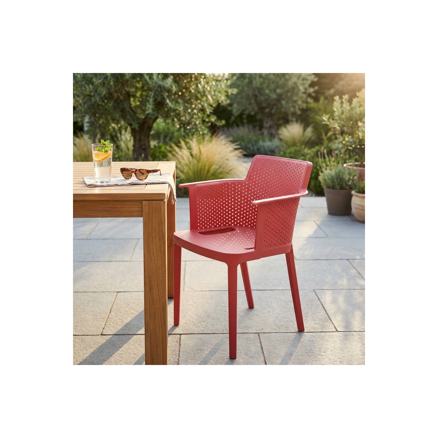 Poltrona da giardino impilabile in polipropilene rossa Cathy