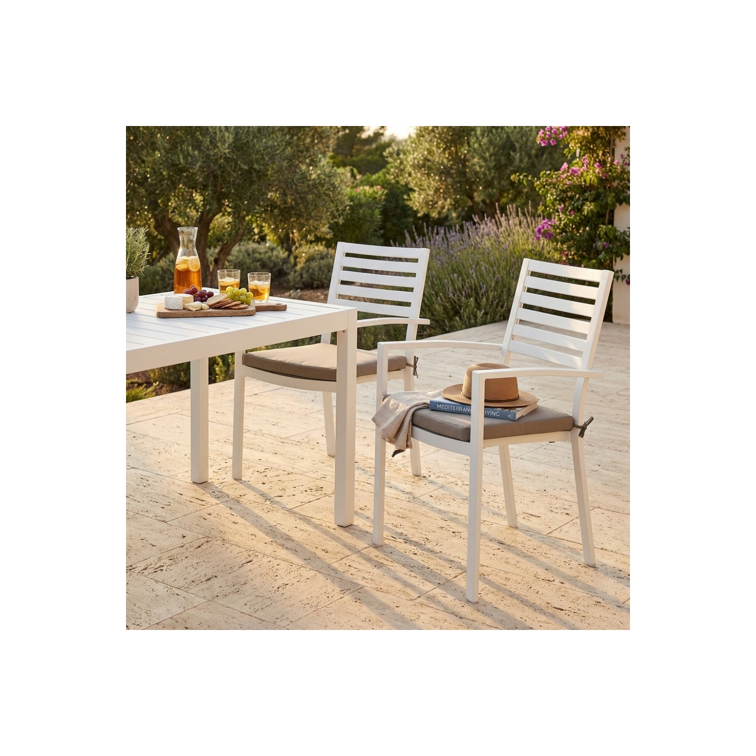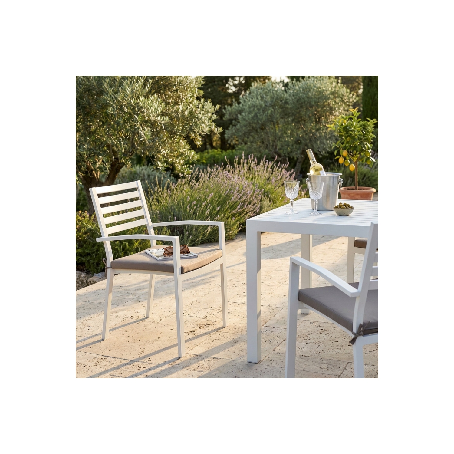 Poltrona da giardino in alluminio con cuscino Formentera - Bianco