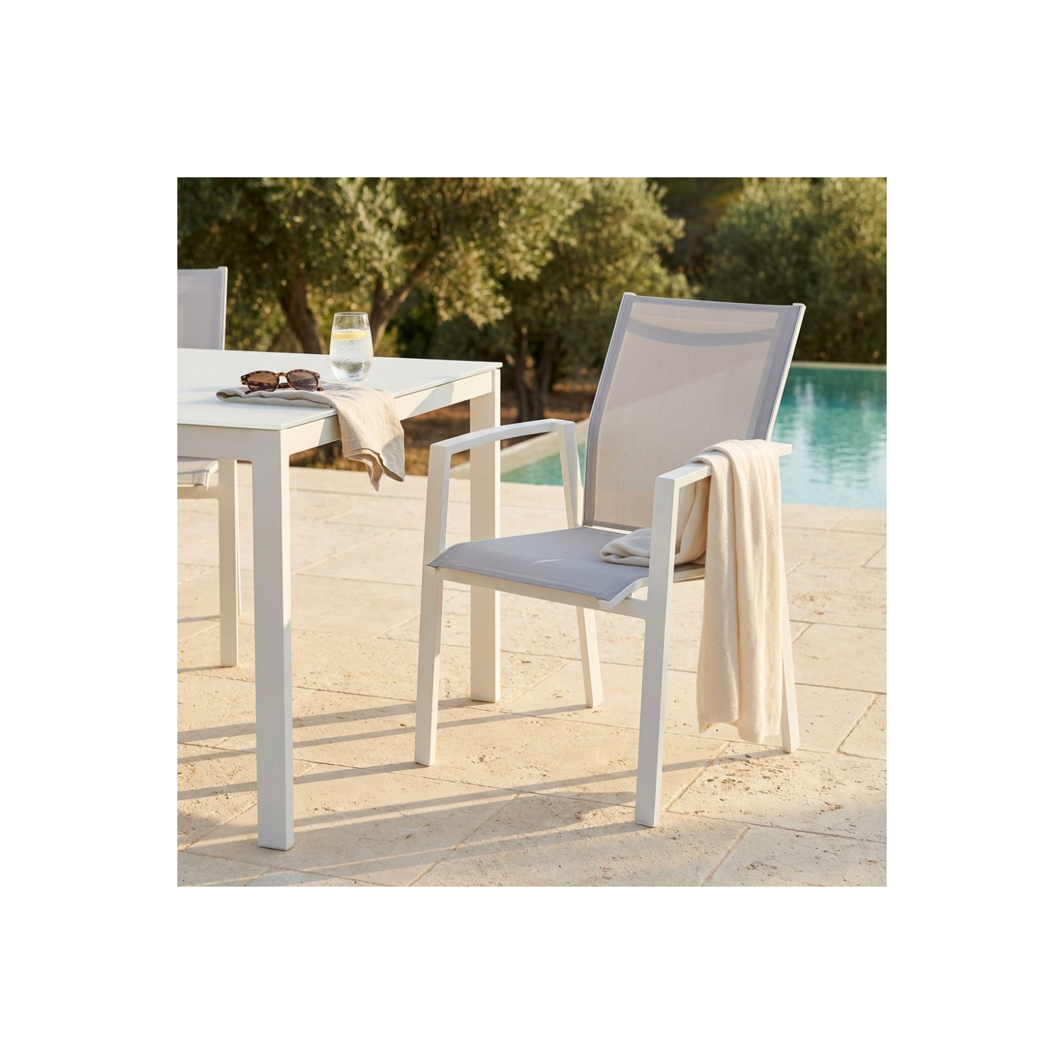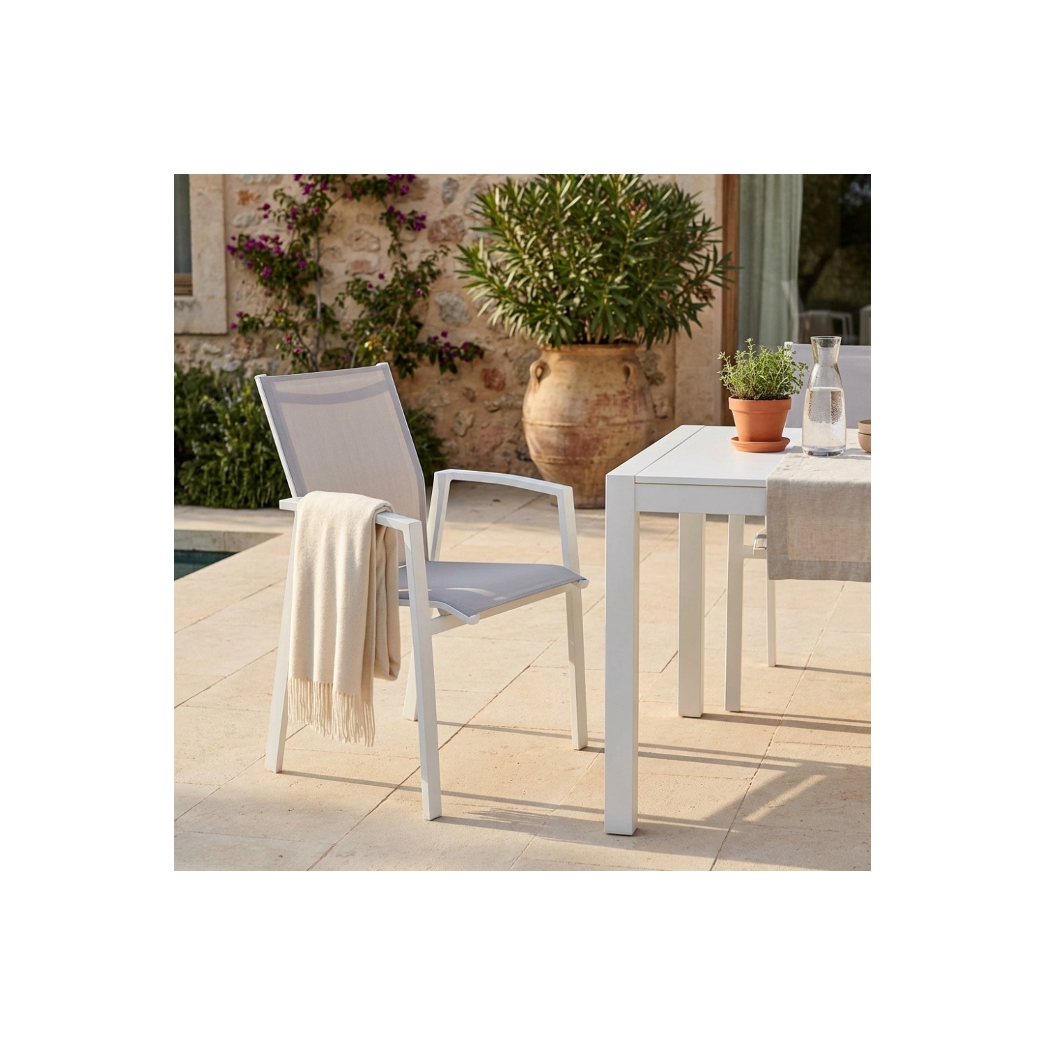 Sedia da giardino con struttura in allumino, seduta e schienale in textilene. Dimensioni: cm 57x61x89 h. Colore: Bianca