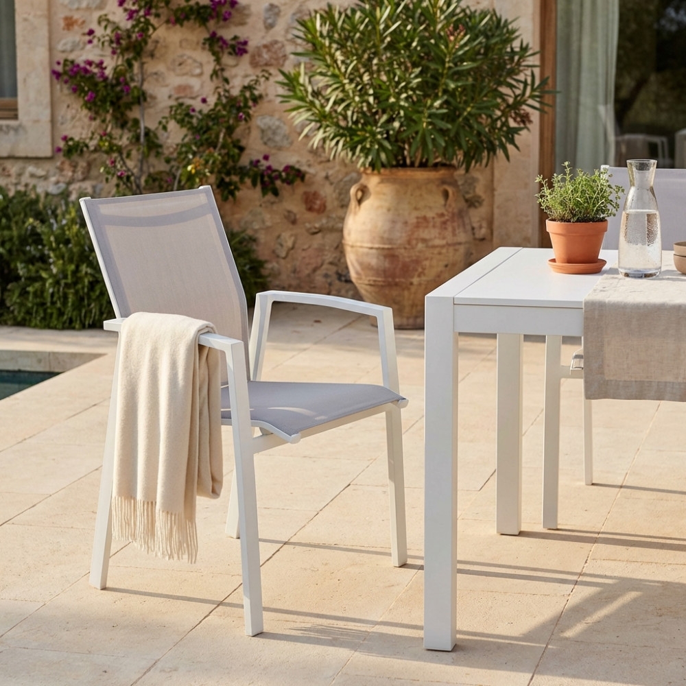 Poltrona in metallo con seduta e schienale in textilene impilabile - Bianca Maili