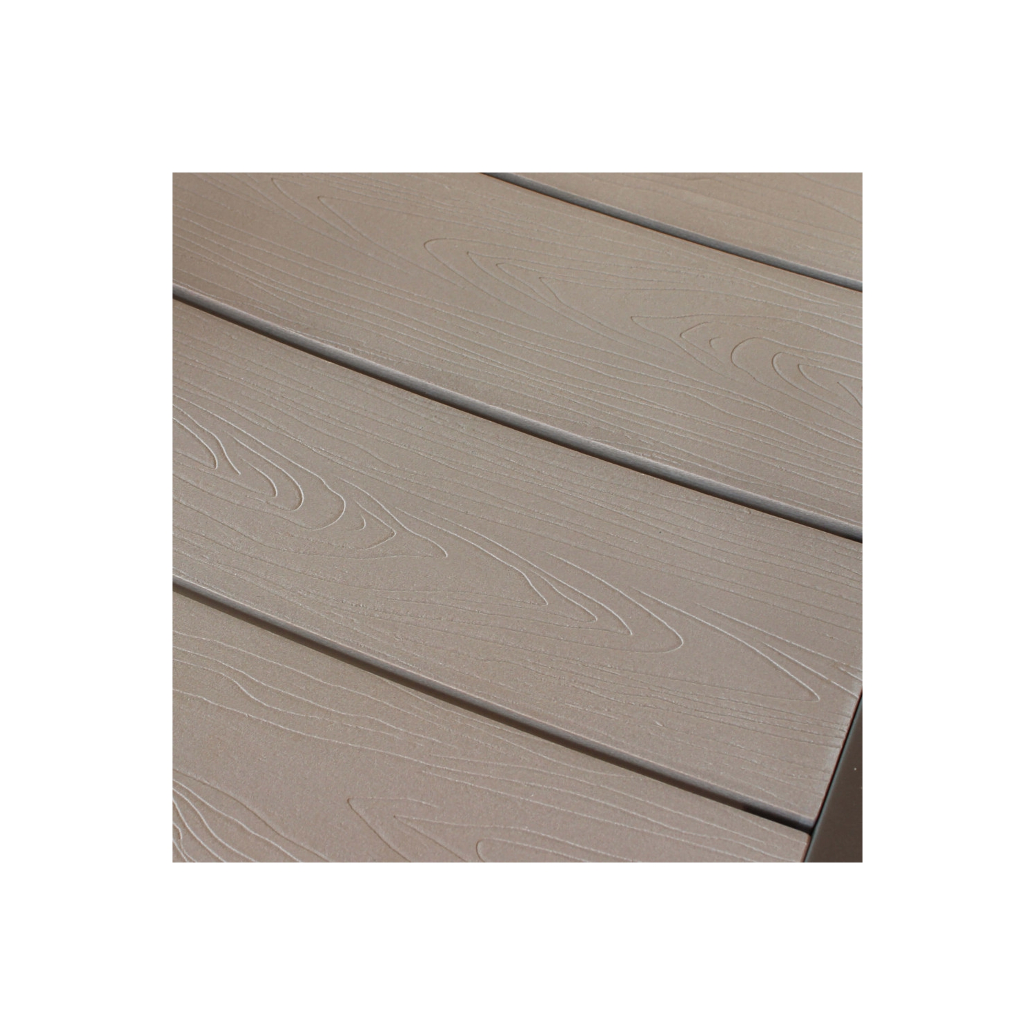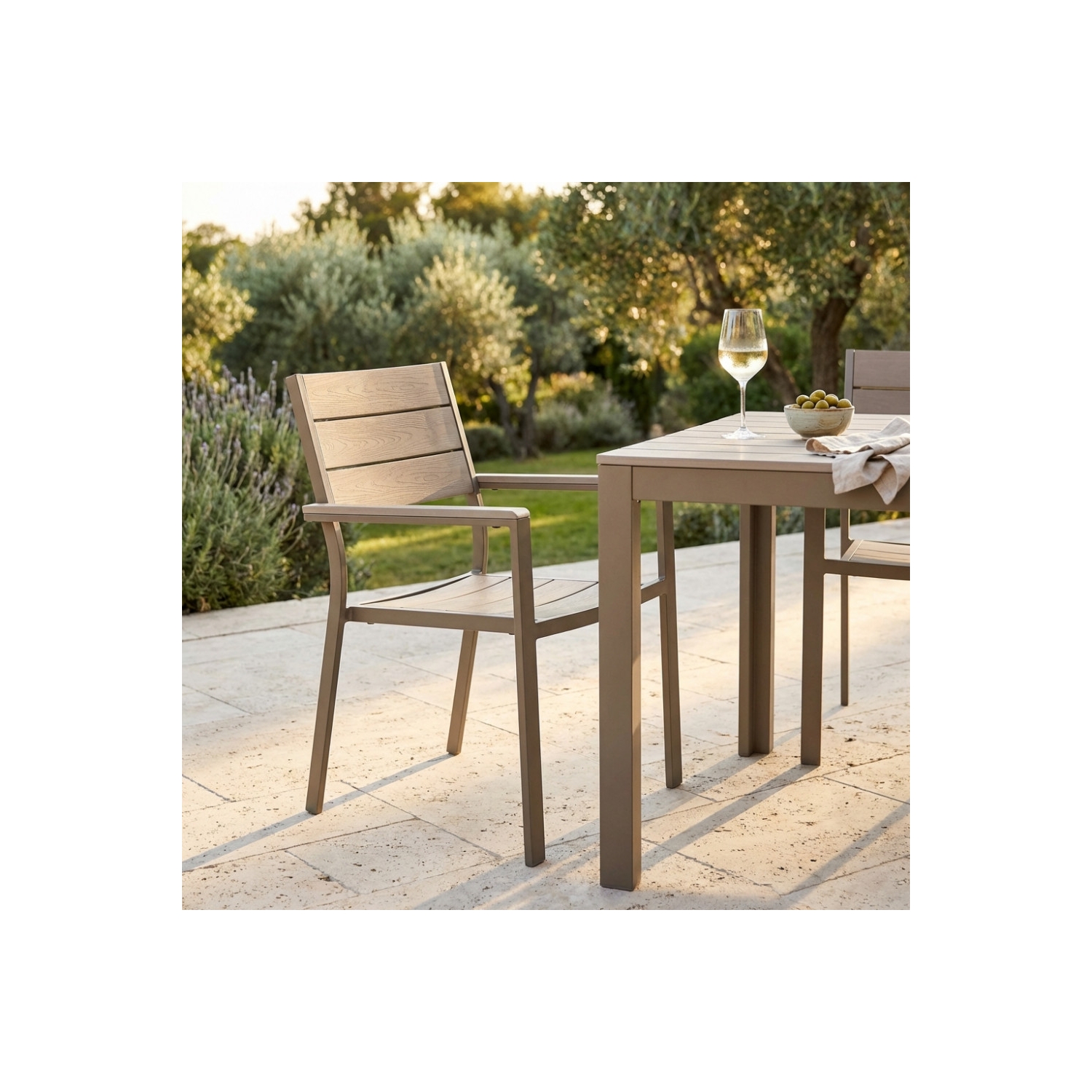 Sedia da giardino con struttura in alluminio verniciato, schienale e seduta con doghe in POLYWOOD colore grigio. Dimensioni: 58x58x89 h cm. Colore: Taupe