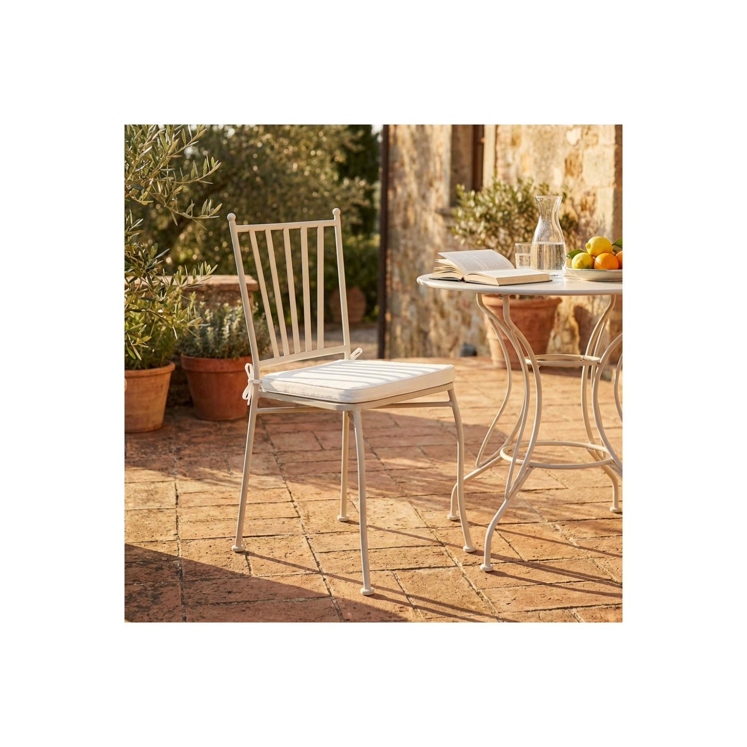 Sedia in acciaio verniciato a polvere tortora cuscino beige - Giunone