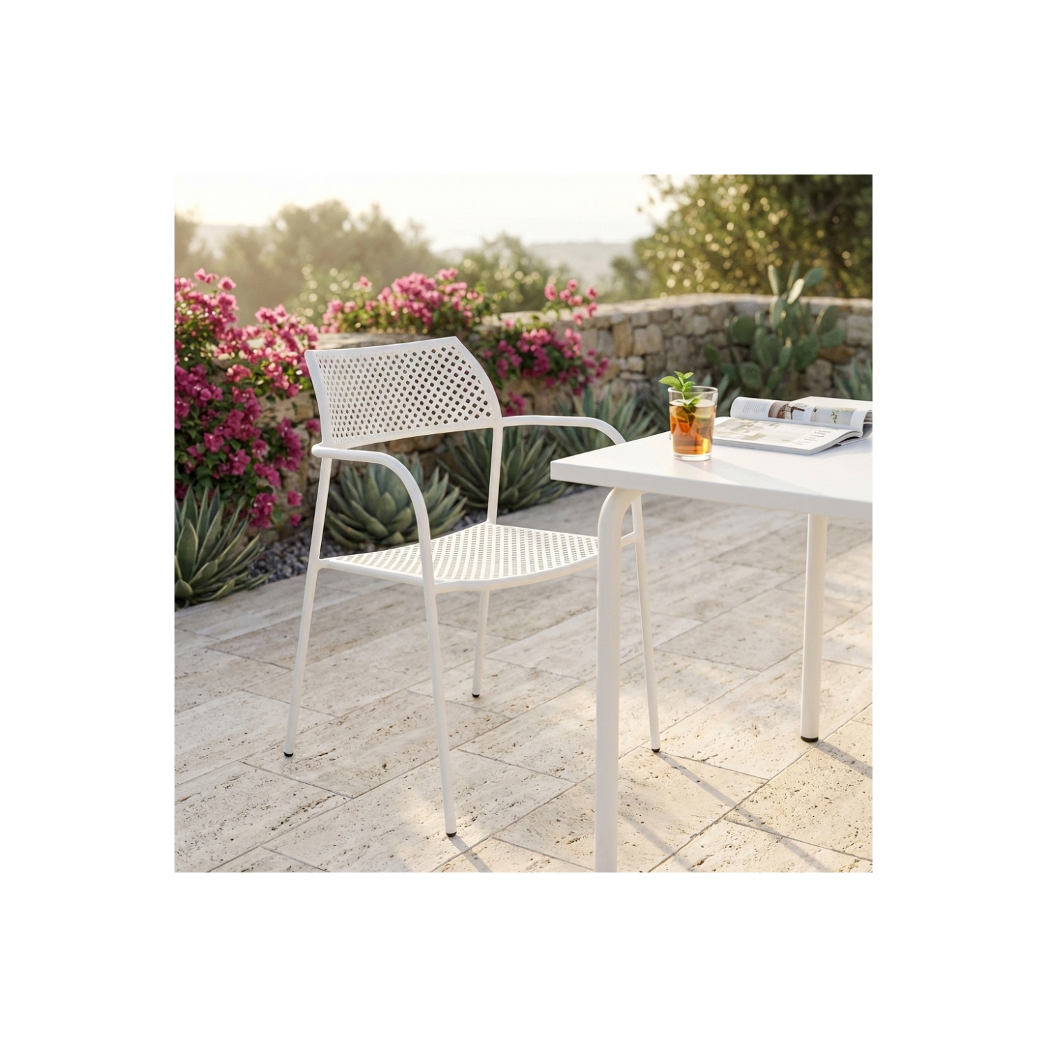 Sedia impilabile da giardino in metallo Ø 19 x 1.2 mm verniciata a polvere. Dimensioni: 56x56x78 h cm. Colore: Bianca