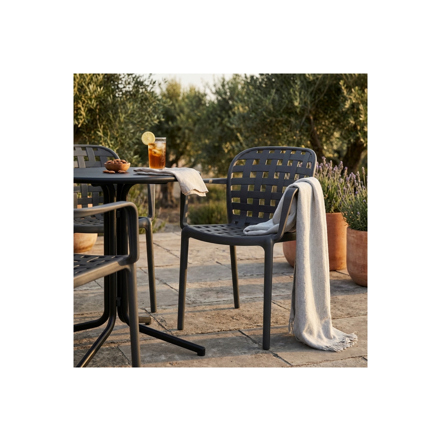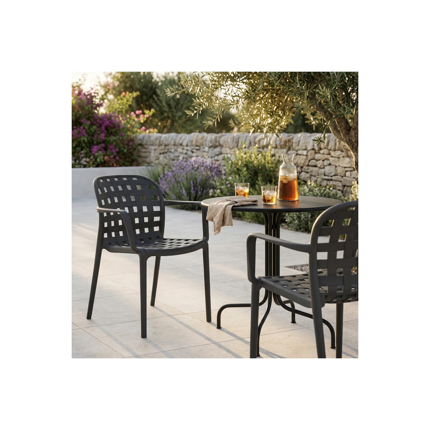 Sedia impilabile con braccioli in polipropilene antracite - Sharon