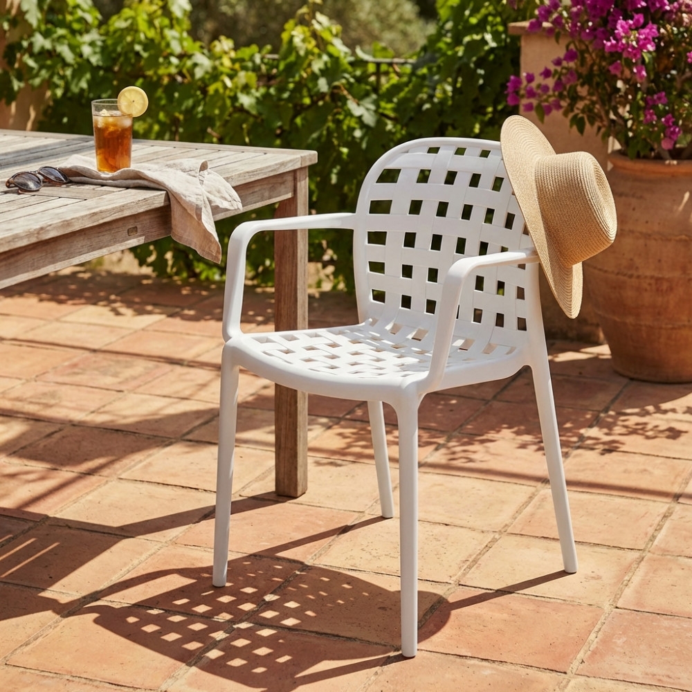Sedia impilabile con braccioli in polipropilene bianca - Sharon