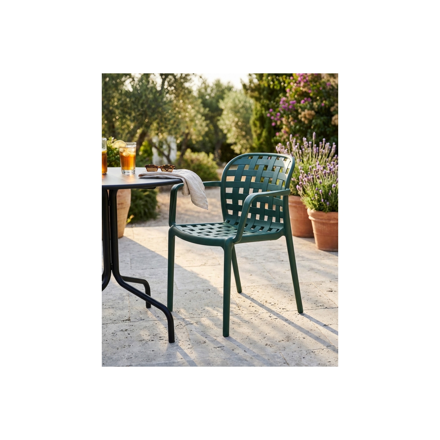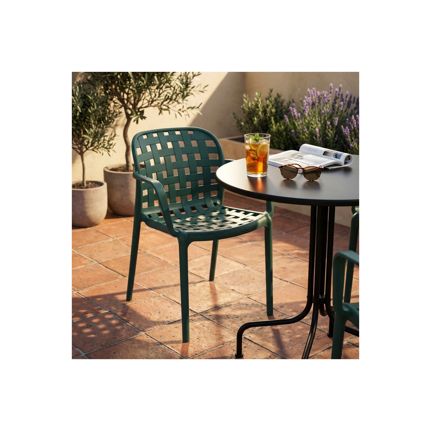 Sedia impilabile con braccioli in polipropilene verde petrolio - Sharon