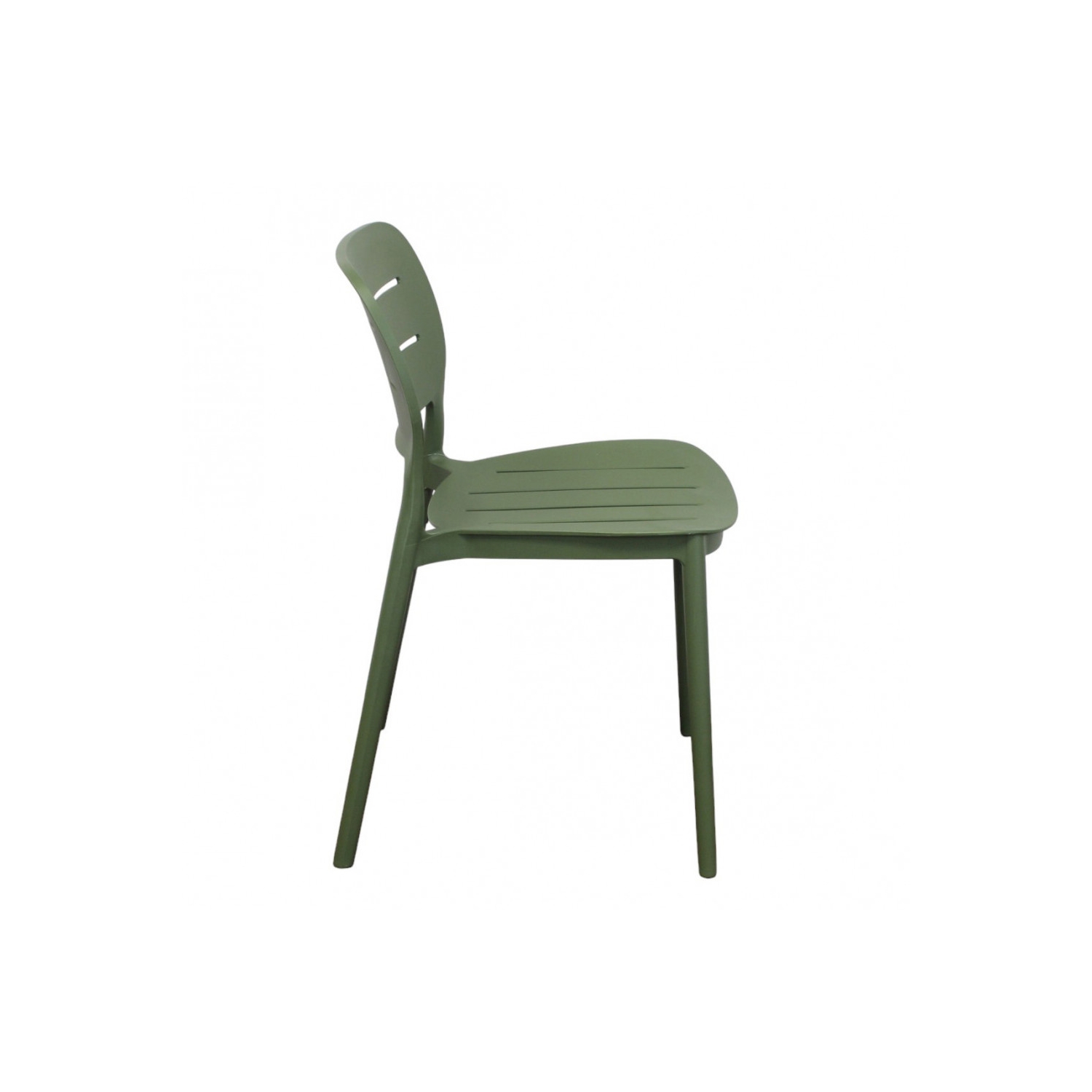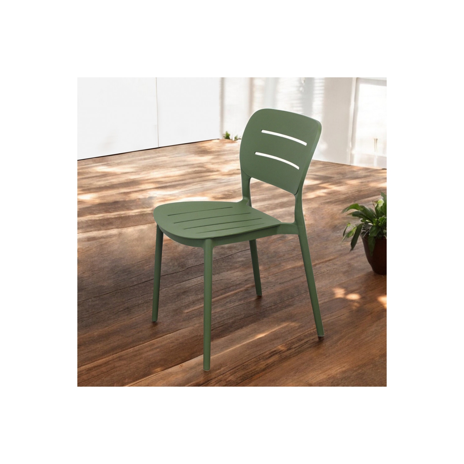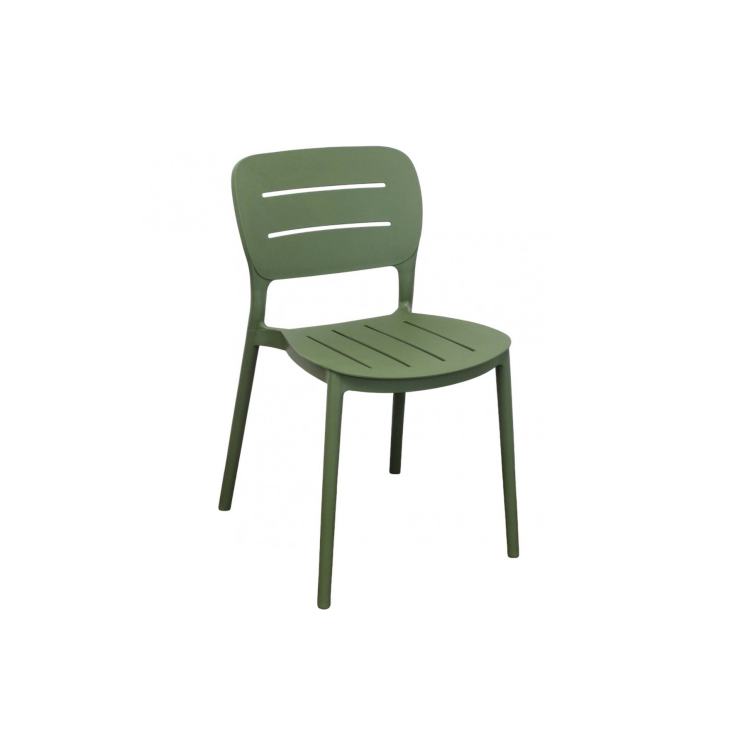 Sedia impilabile in polipropilene colorata. Dimensioni: cm 52,5 l x 44 p x 79 h