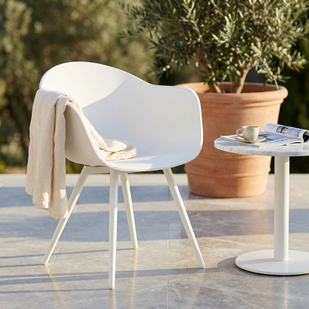 Sedia in polipropilene adatta sia per l'interno che per l'esterno gambe in alluminio. Dimensioni: 61x61x80 h cm. Colore: Bianca