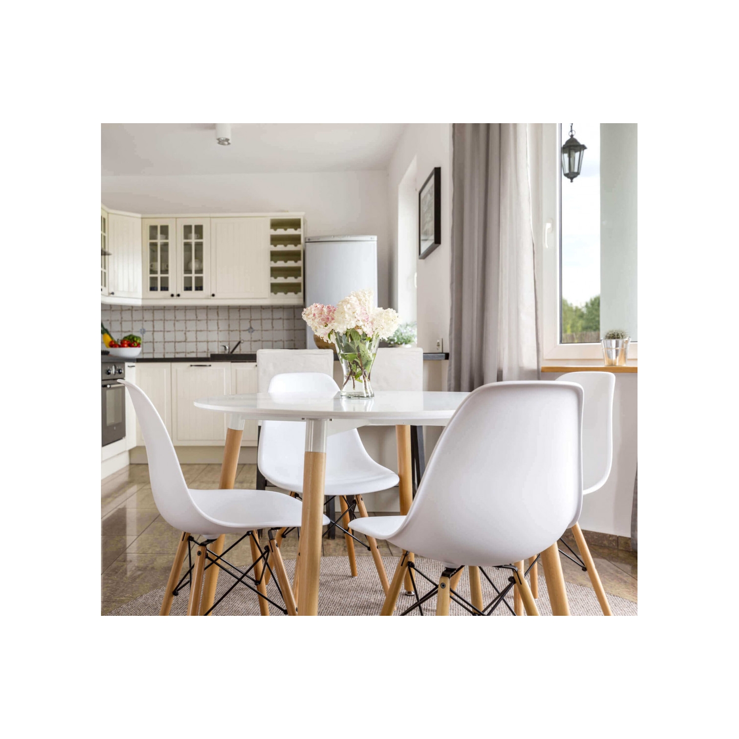 Sedia in polipropilene e gambe in legno bianca - Moritz