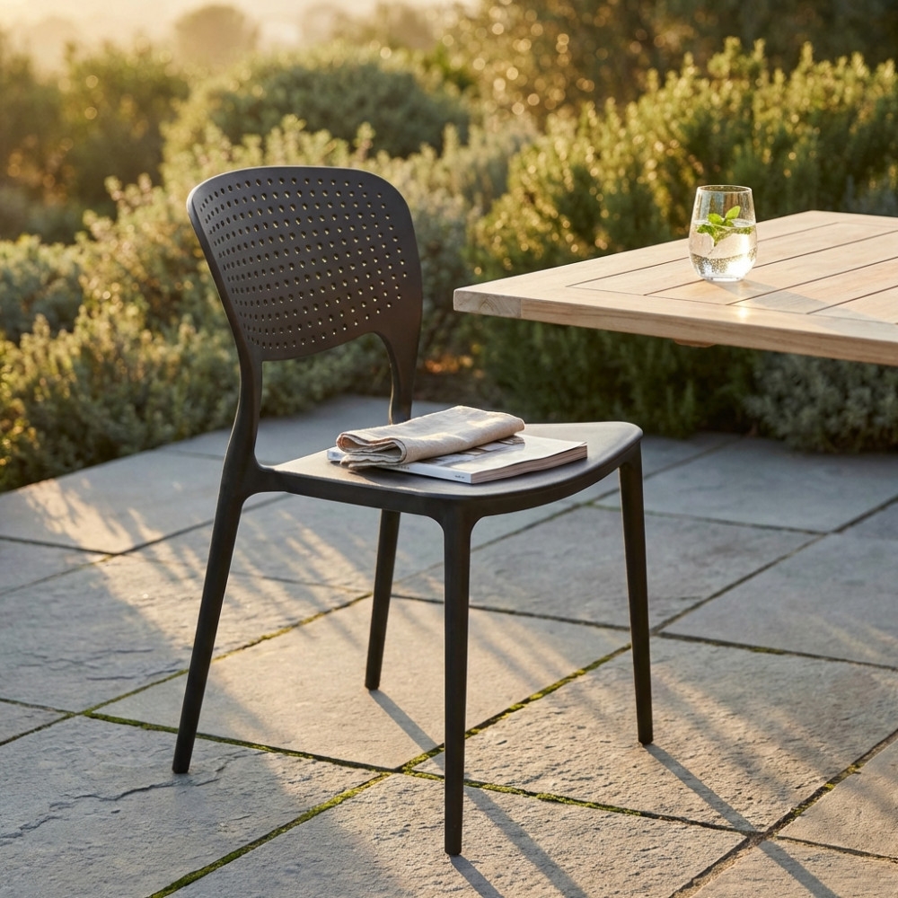 Sedia ANTRACITE in polipropilene adatta sia per l'interno che per l'esterno. Dimensioni: cm 56 x 46 x 80 h