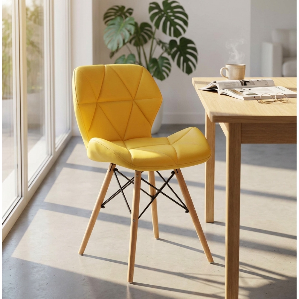 Sedia moderna gialla con gambe in legno rivestita in PU - Annapolis