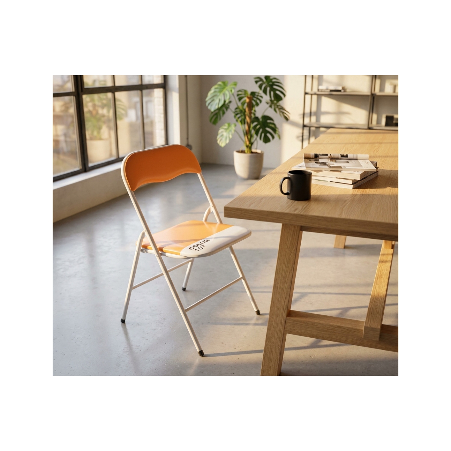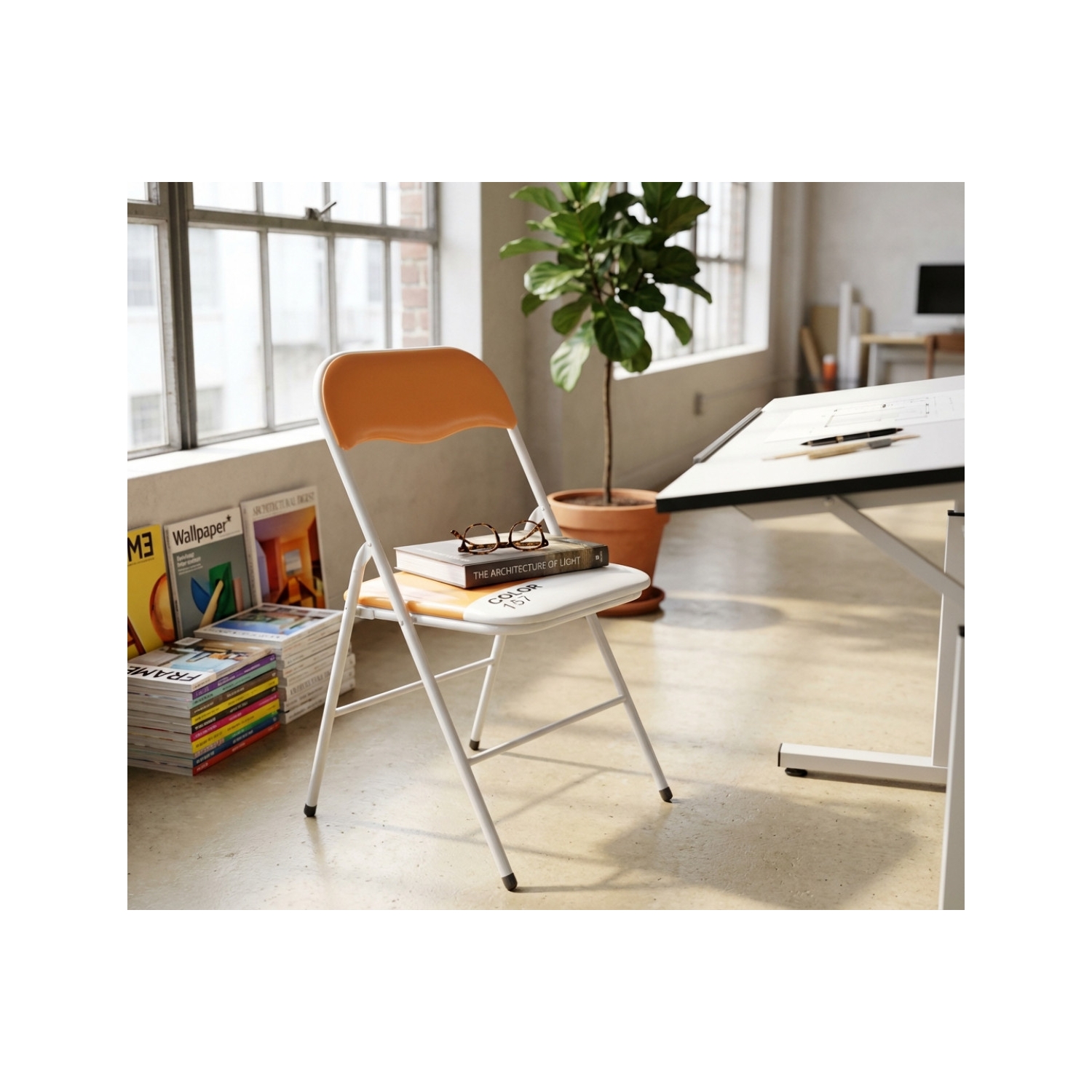 Sedia pieghevole salvaspazio imbottita di colore arancio