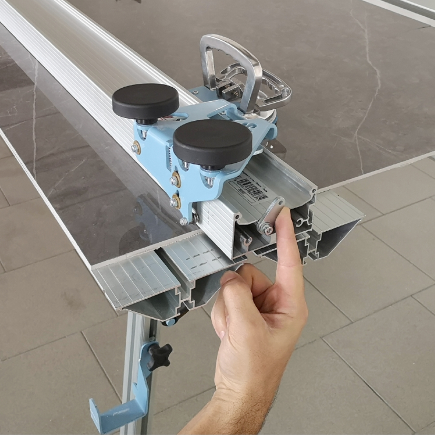 Sistema di taglio estensibile per piastrelle di grande formato.