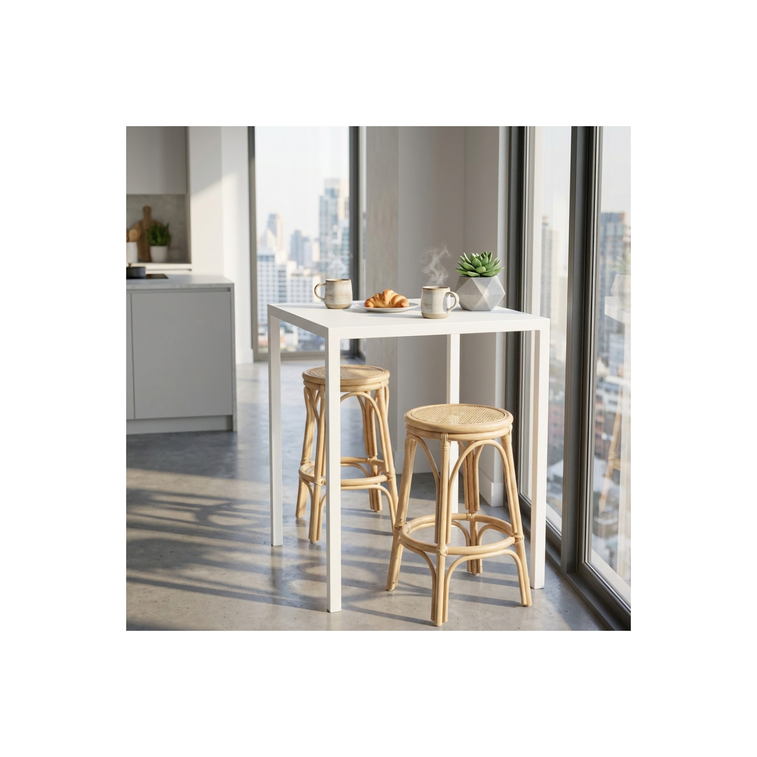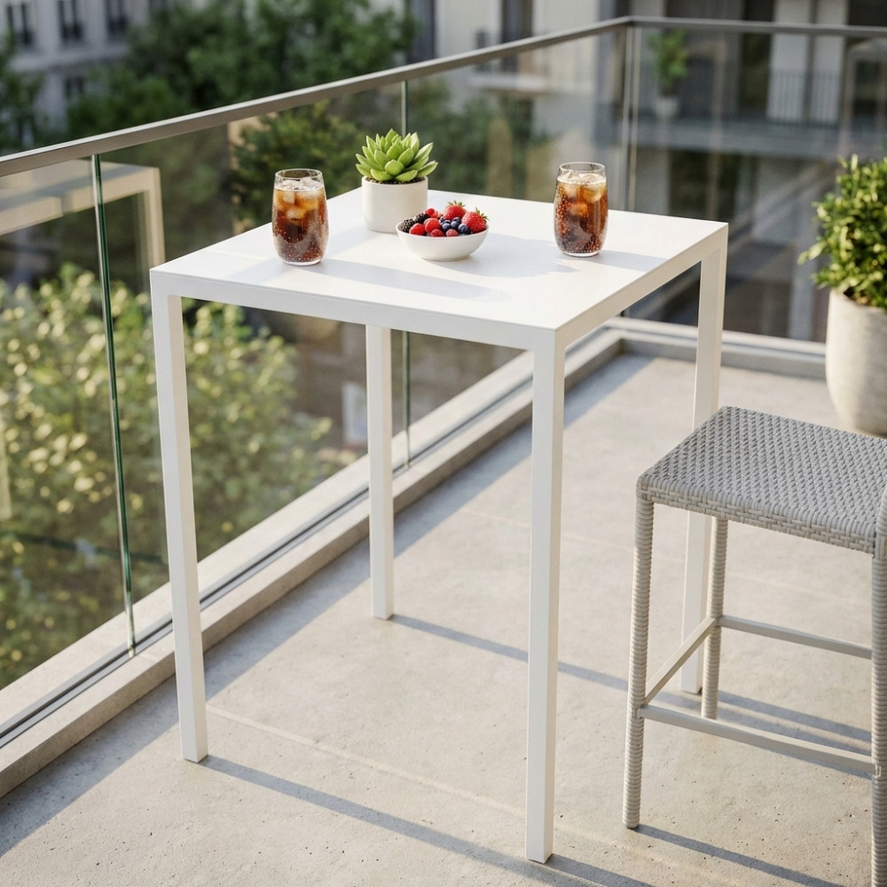 Tavolo alto bianco 70x70x110h cm da esterno autolivellante
