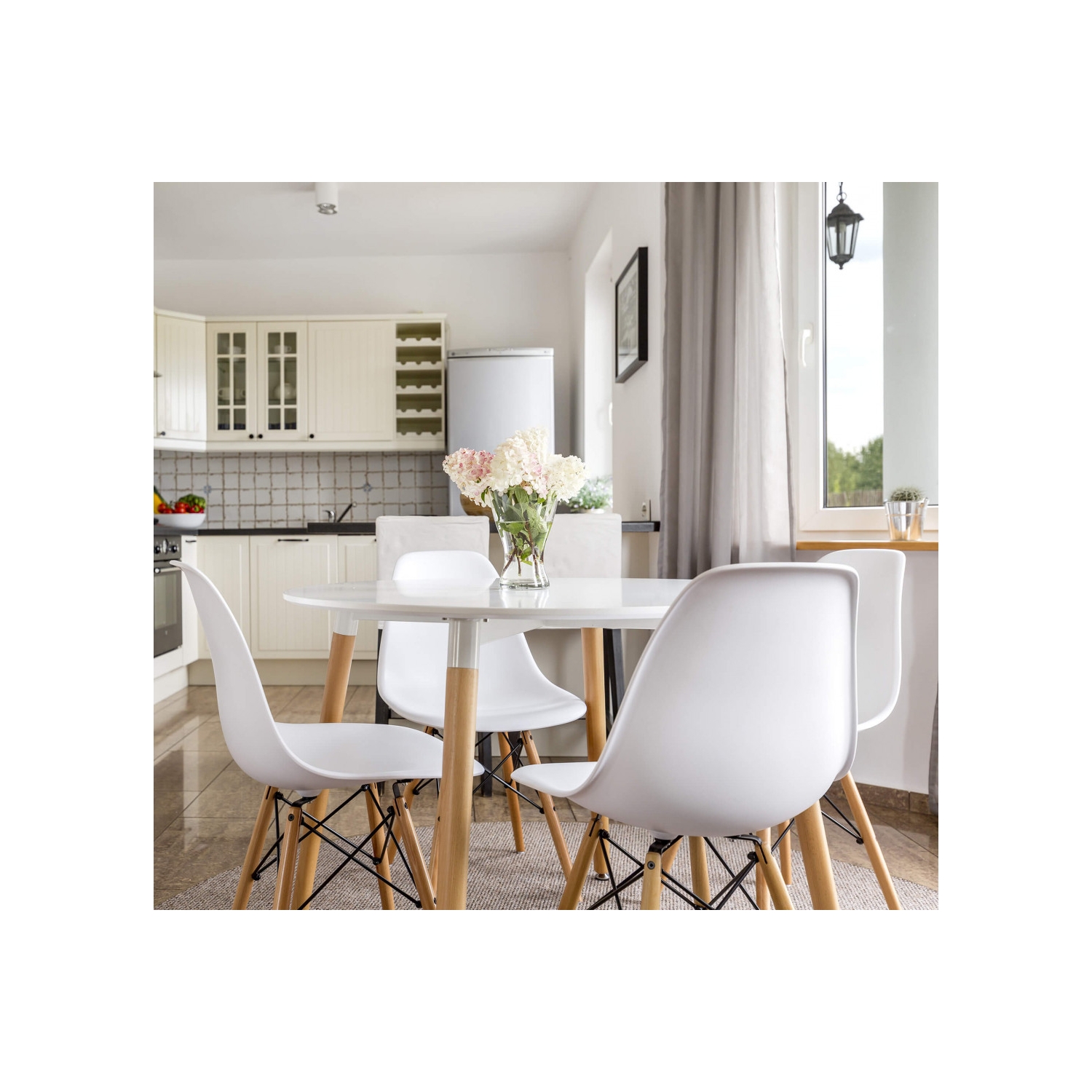 Tavolo rotondo da pranzo 120cm con gambe in legno - LIONE