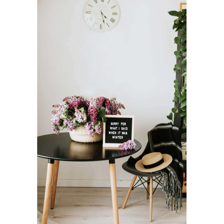 Tavolo tondo 120 cm nero con gambe in legno - LIONE