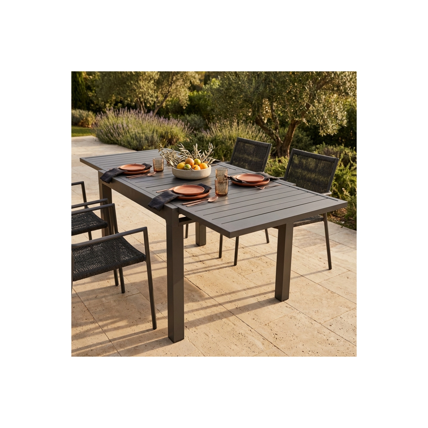 Struttura e piano in allumino TAUPE. Dimensioni: cm 90/180 x 90 x 75 h