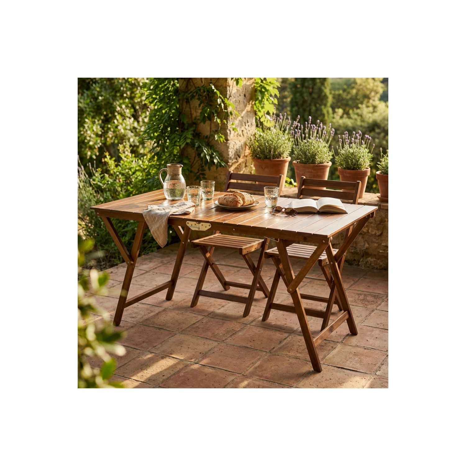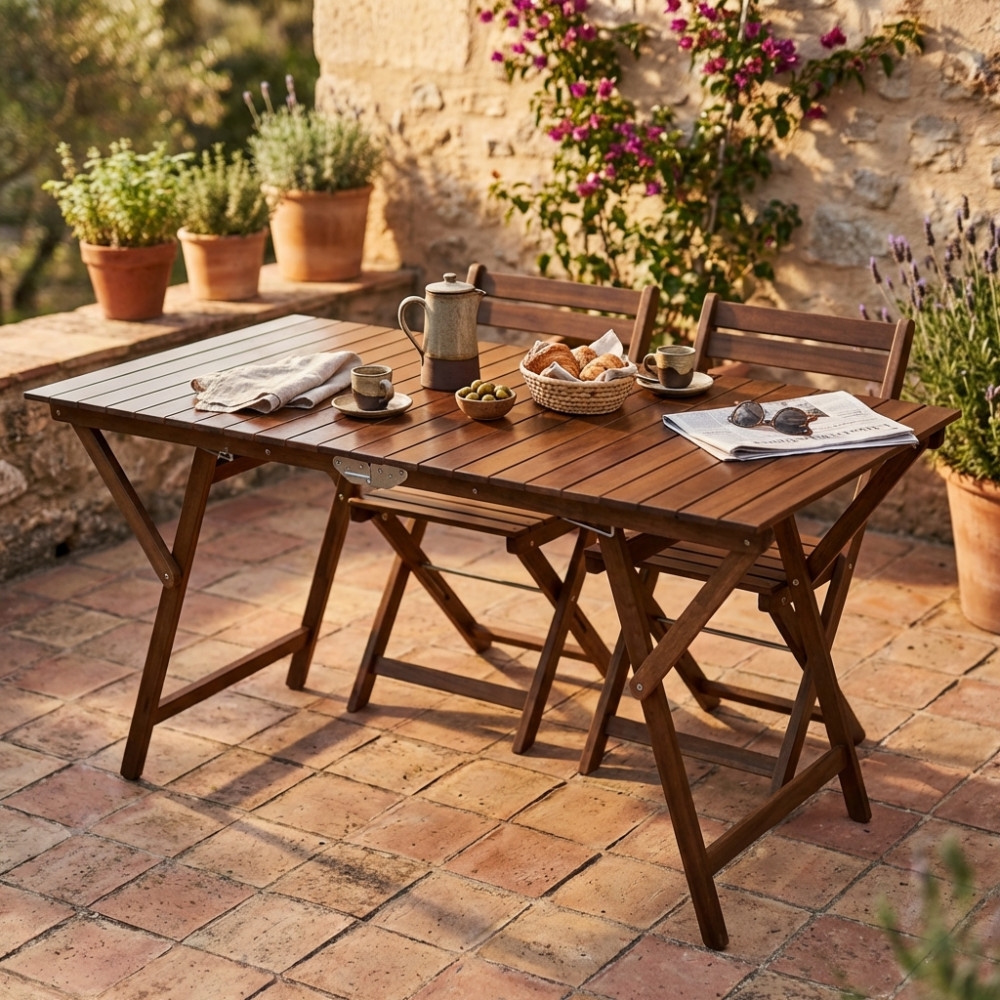 Tavolo pieghevole in legno di faggio 70x140 cm Tinta Noce