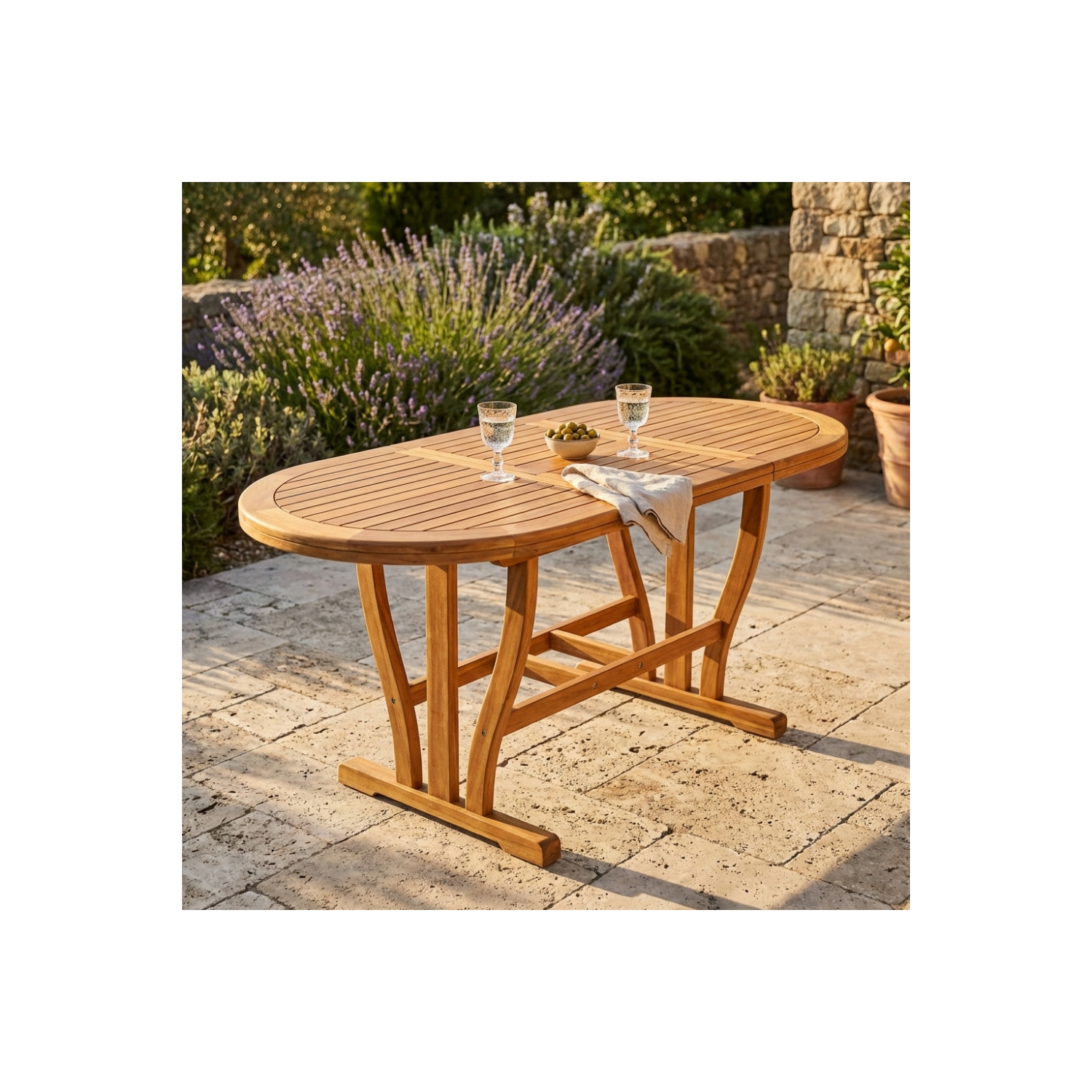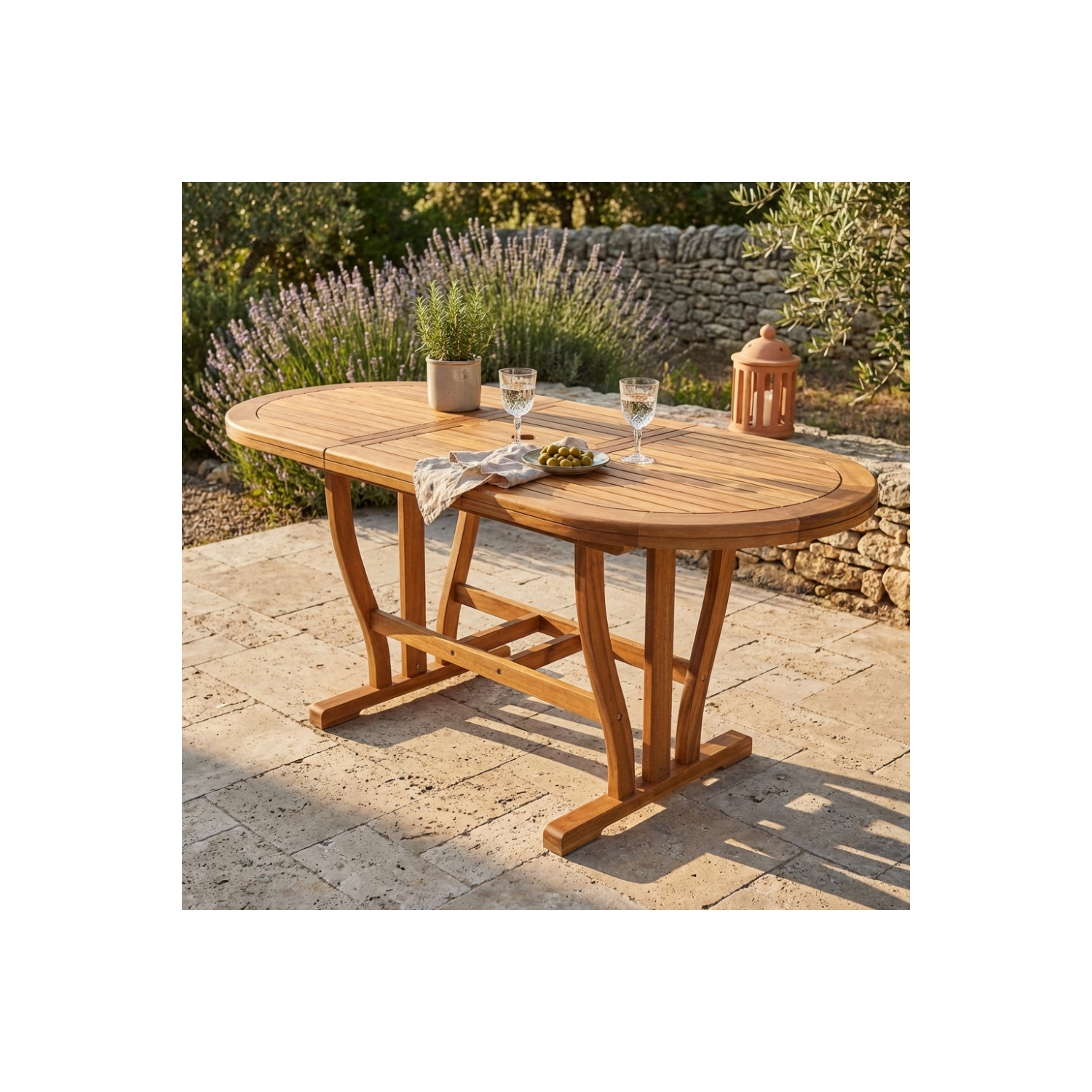 Legno di Acacia massiccio spessore 44 mm doppio bordo Dimensioni: cm 120/160 x 70 x 74 h
