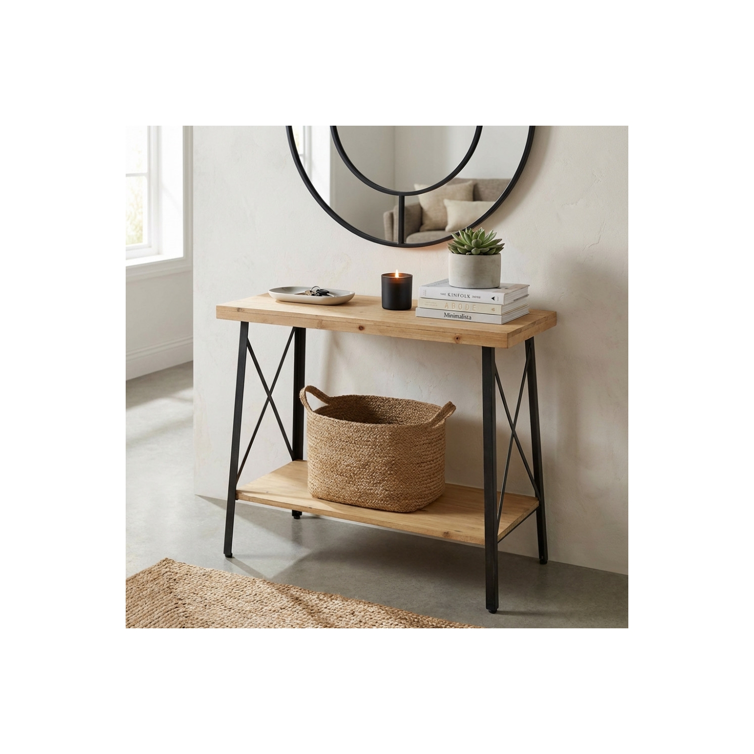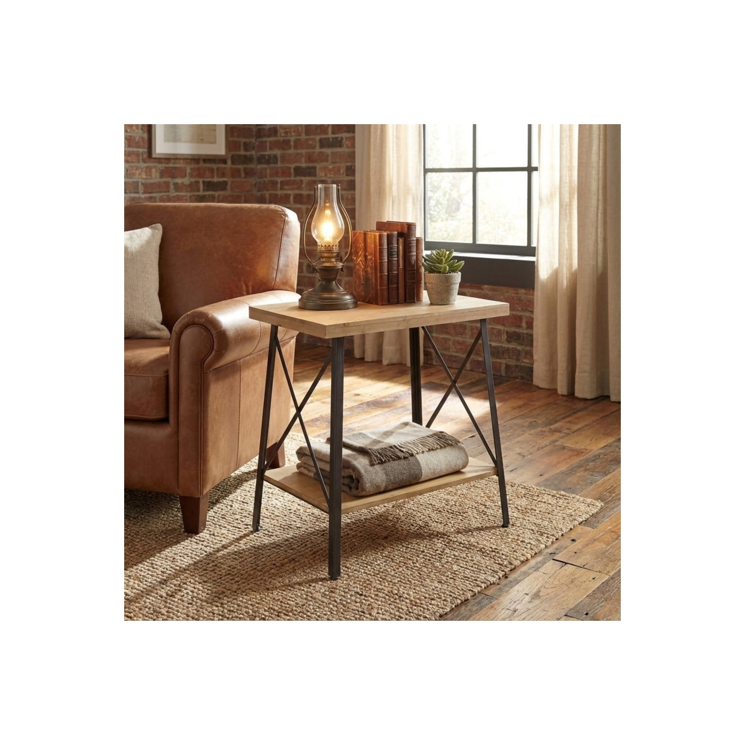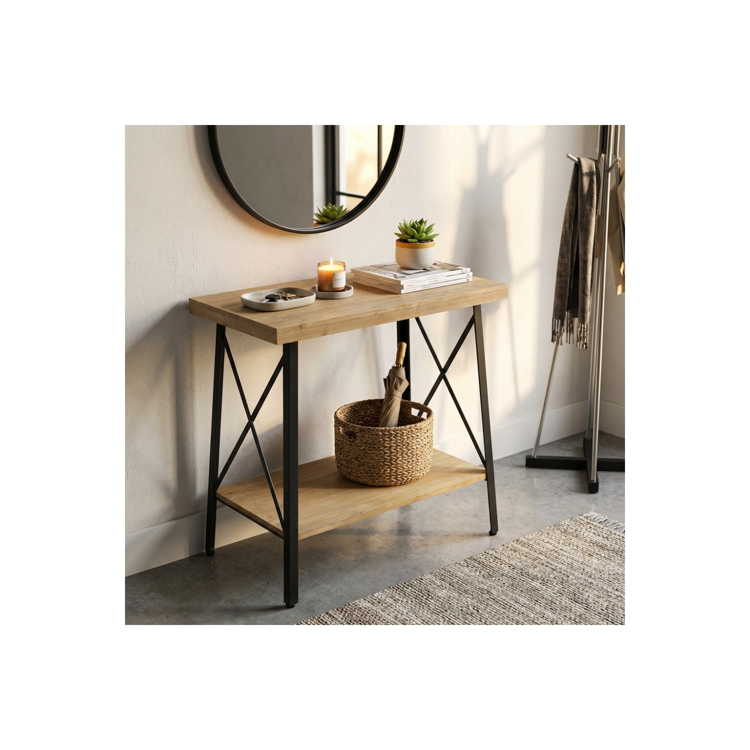 Tavolino in ferro e legno con 2 ripiani 63x40x68 h - AUBERON