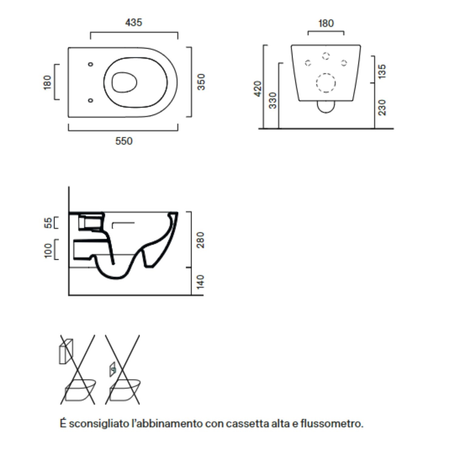 Non consigliato l’abbinamento con cassette alte o flussometri